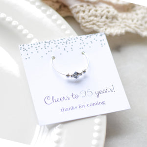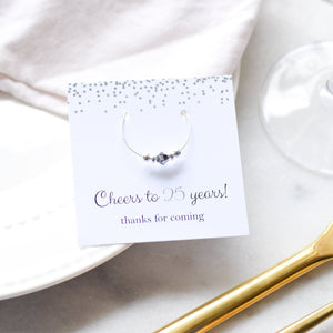 Cheers to 25 Years! Our Swarovski crystal wine charms are an elegant and unique way to say 'thank you' to your guests. Every time they use the charms, they will think of the fabulous details and awesome time they had celebrating the marriage of two special people.