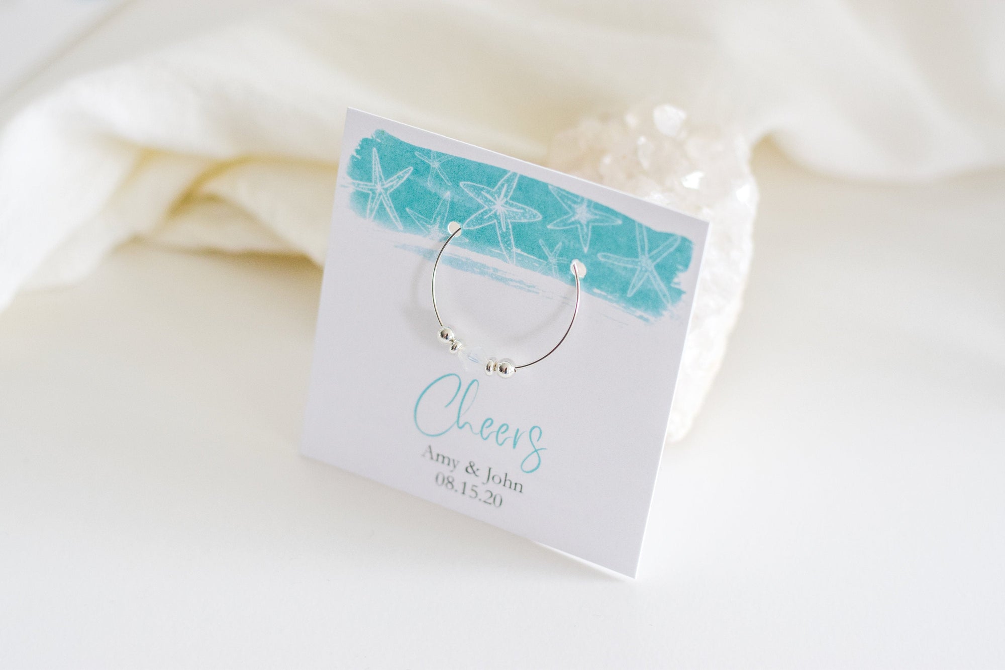 Cheers to good times and tan lines! Our Swarovski crystal wine charms are a fun and unique way to say 'thank you' to your guests. Every time they use the charms, they will think of the fabulous details and awesome time they had in anticipation of the big day!