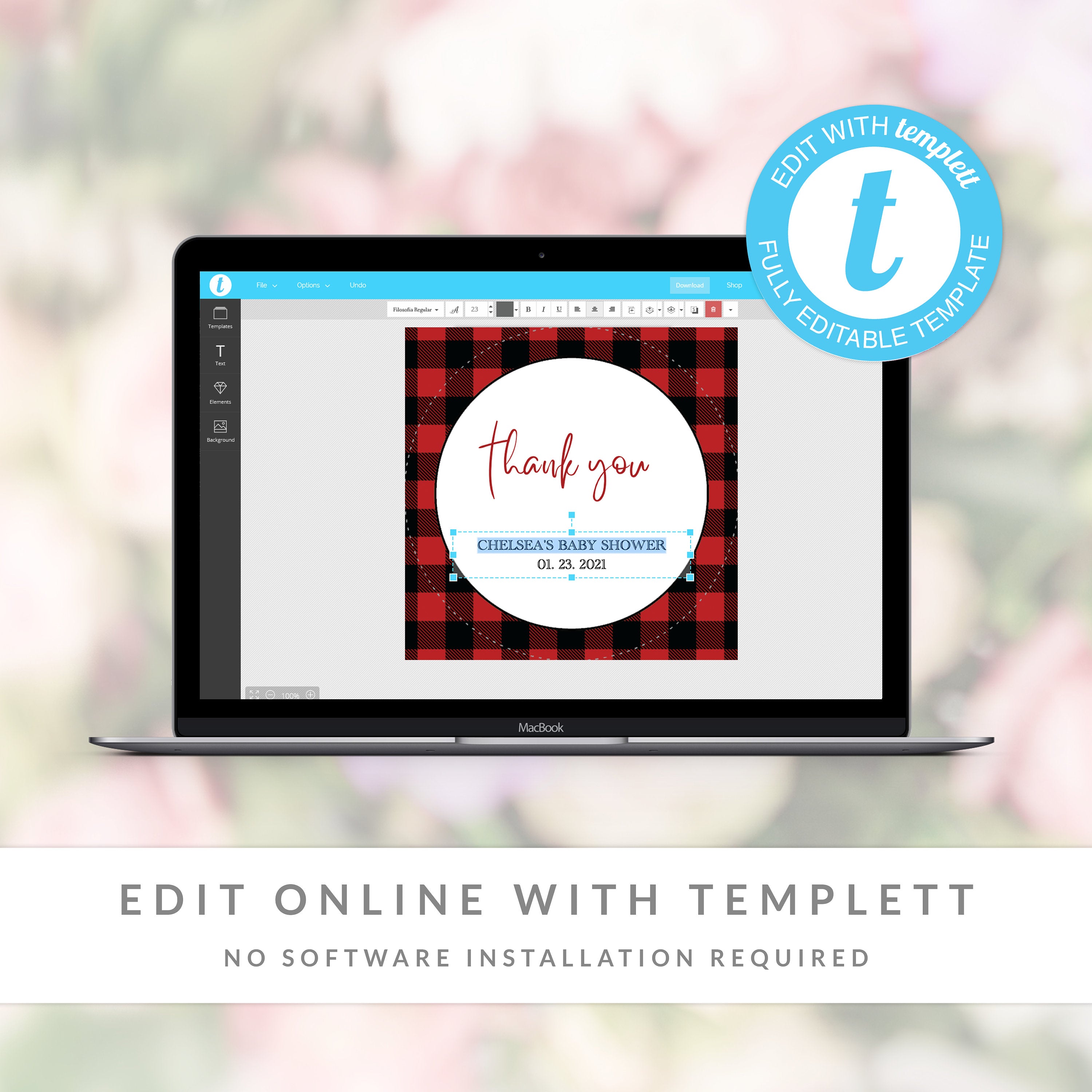 Buffalo Plaid Baby Shower Favor Tags Template, Printable Lumberjack Thank You Tags, Round Square or Rectangle, Editable INSTANT DOWNLOAD - BP100