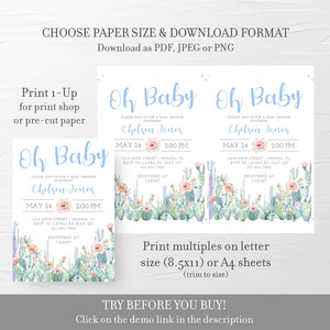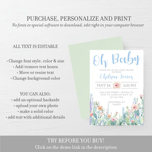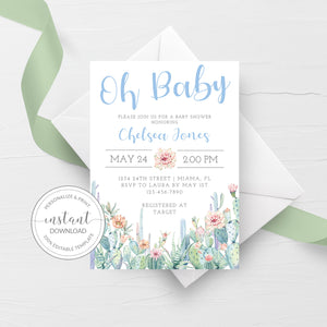 Cactus Baby Shower Invitation Template, Printable Boy Baby Shower Invite, Editable INSTANT DOWNLOAD - CS100
