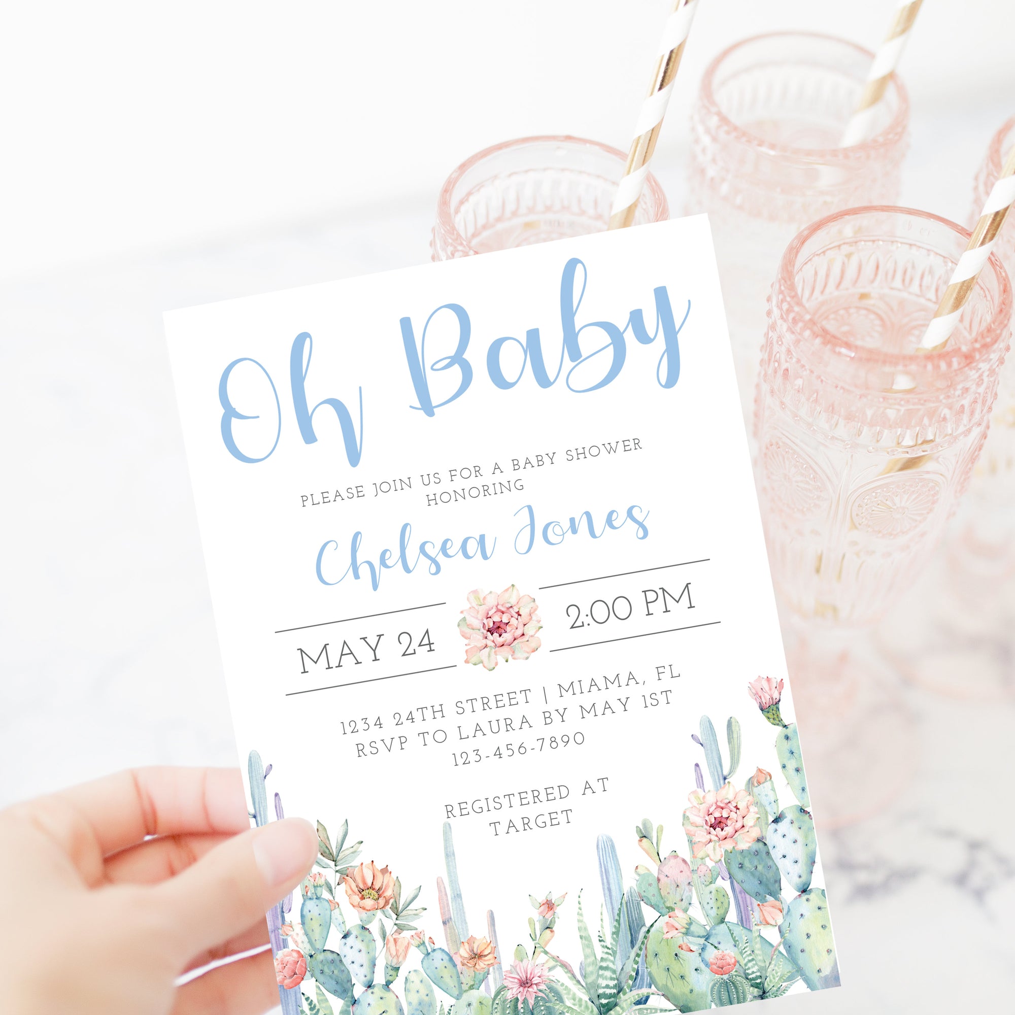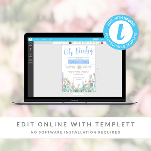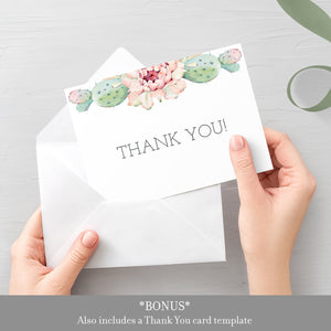 This cactus baby shower invitation is available as an INSTANT DOWNLOAD editable template. Edit right in your browser using the online program, Templett. No software to download or fonts to install and you can even try it out before you buy!