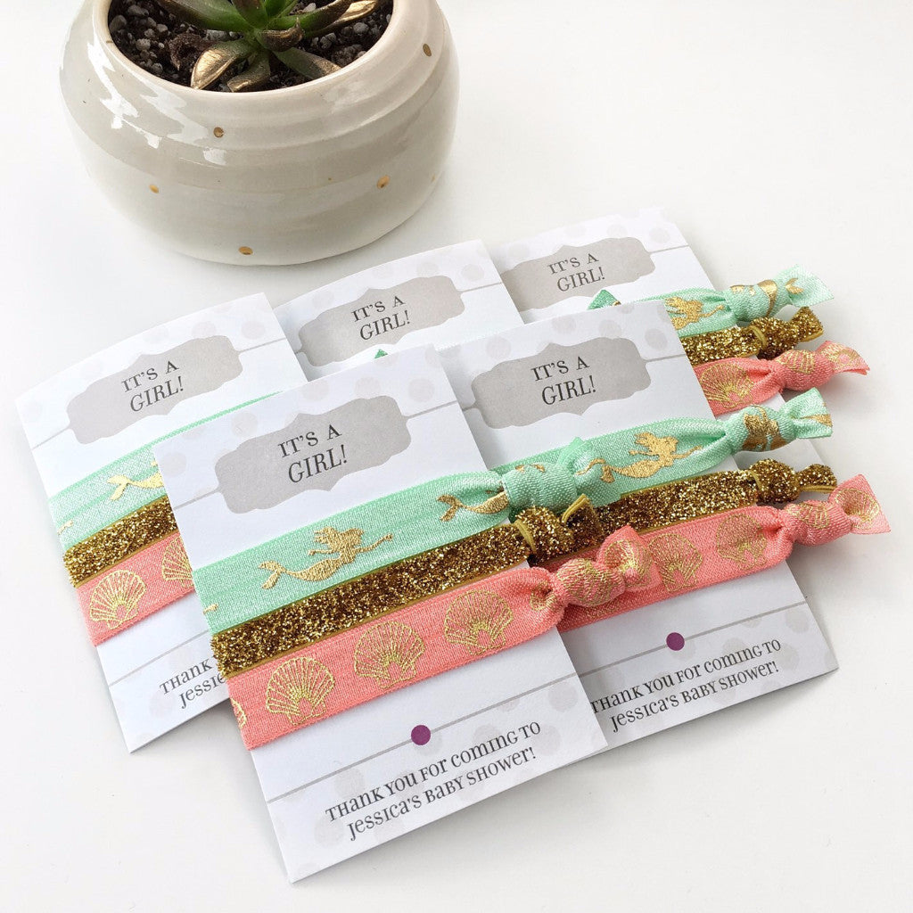 It's a Girl Mermaid Baby Shower Favors, Hair Ties