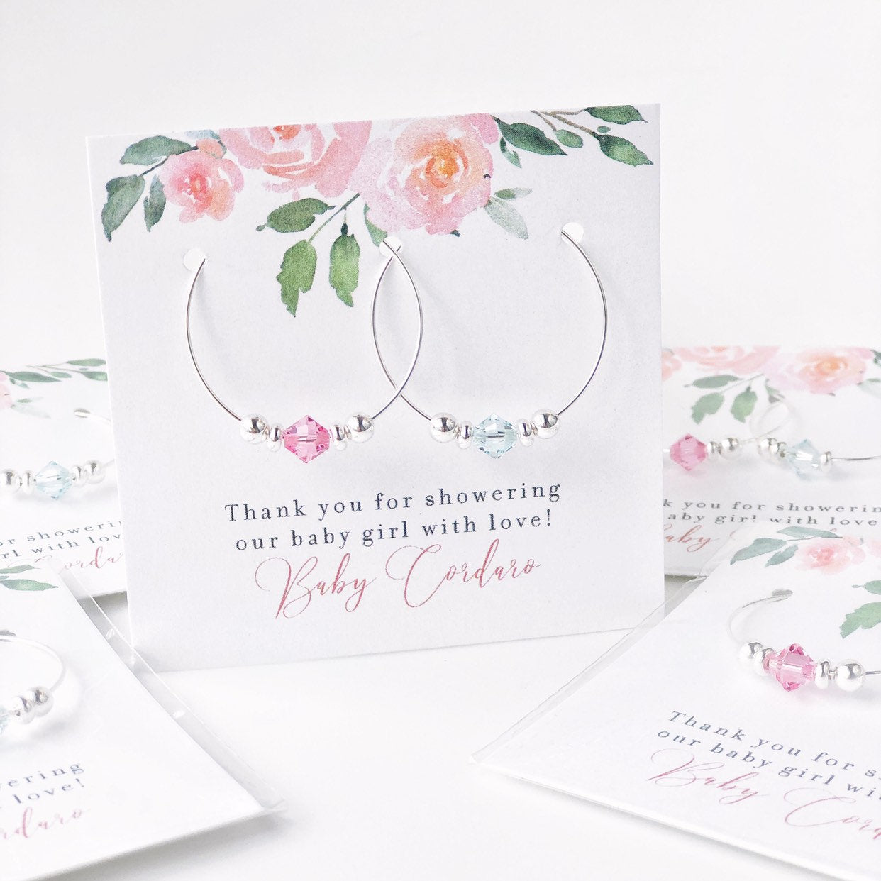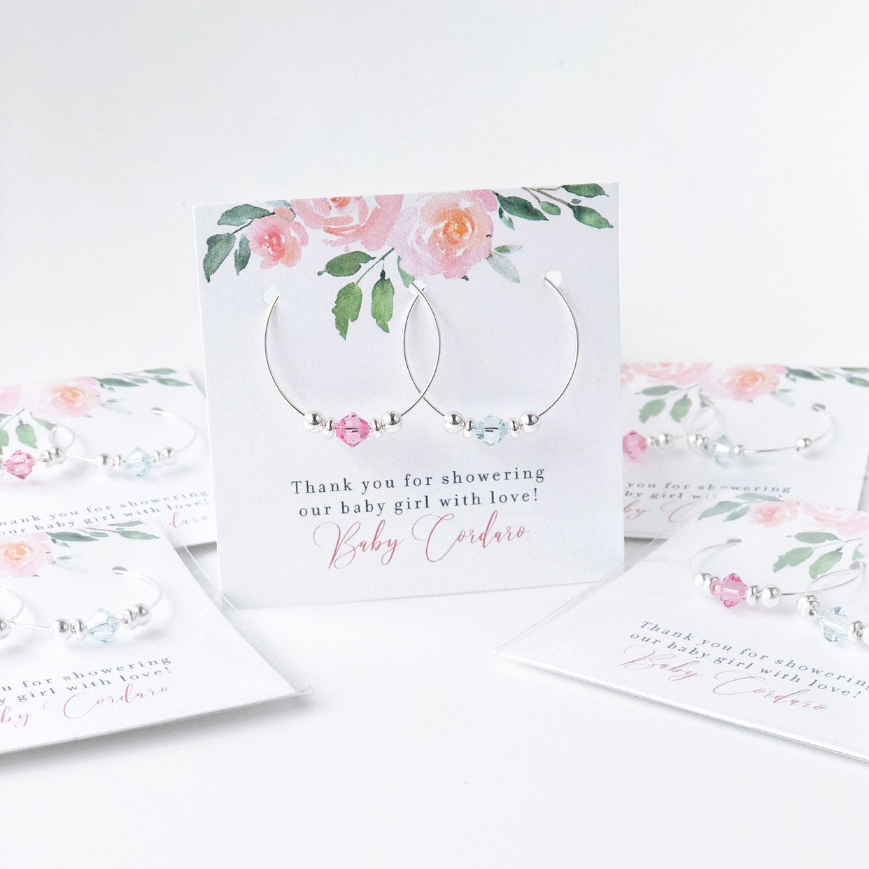 Wine Baby Shower Favors Floral, Sip and See Decorations, Sip and See Favors, Girl Baby Shower Decorations, Swarovski Wine Charms - FR100