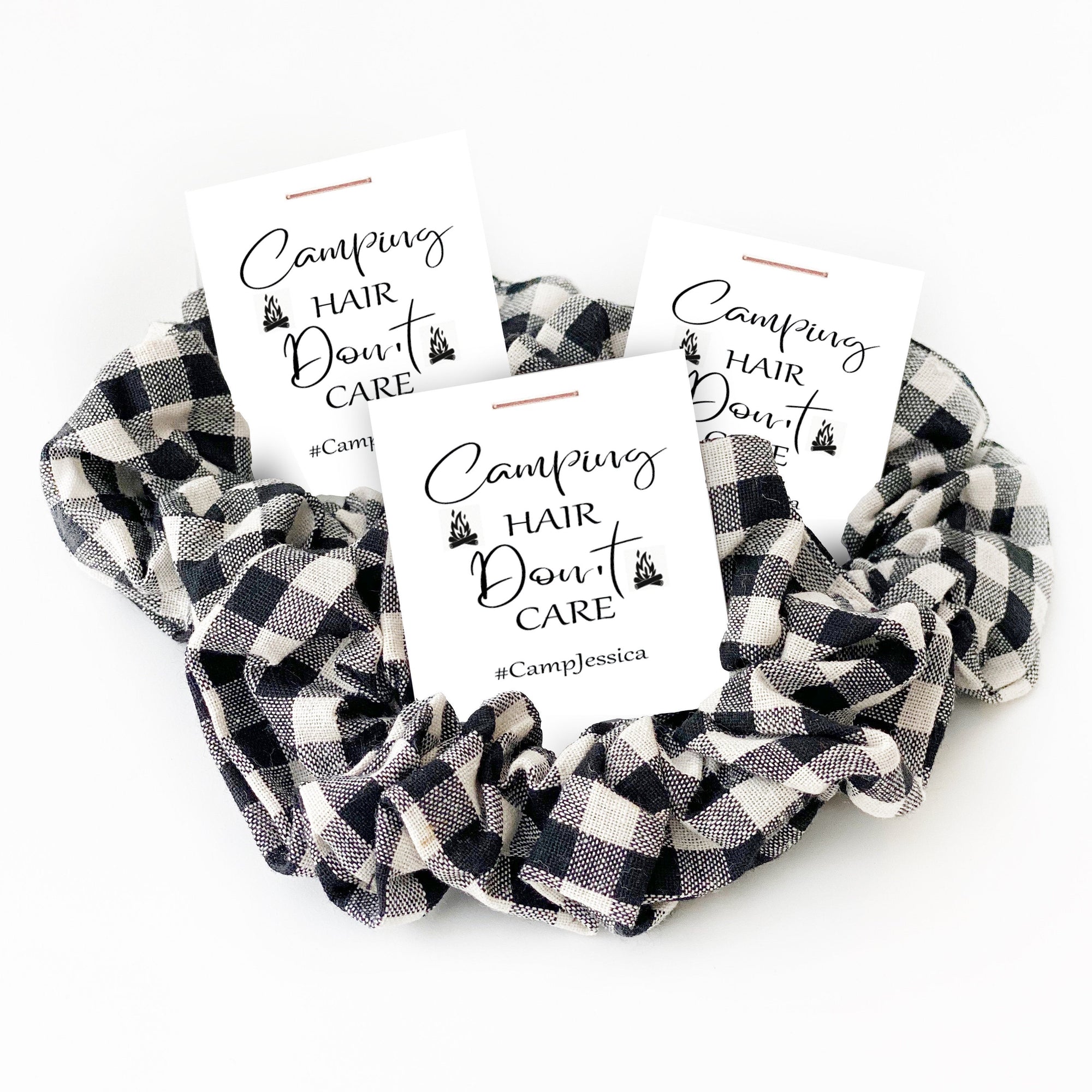 Camping Hair Don't Care, Buffalo Plaid Camping Bachelorette Favor, Glamping Hair Scrunchie