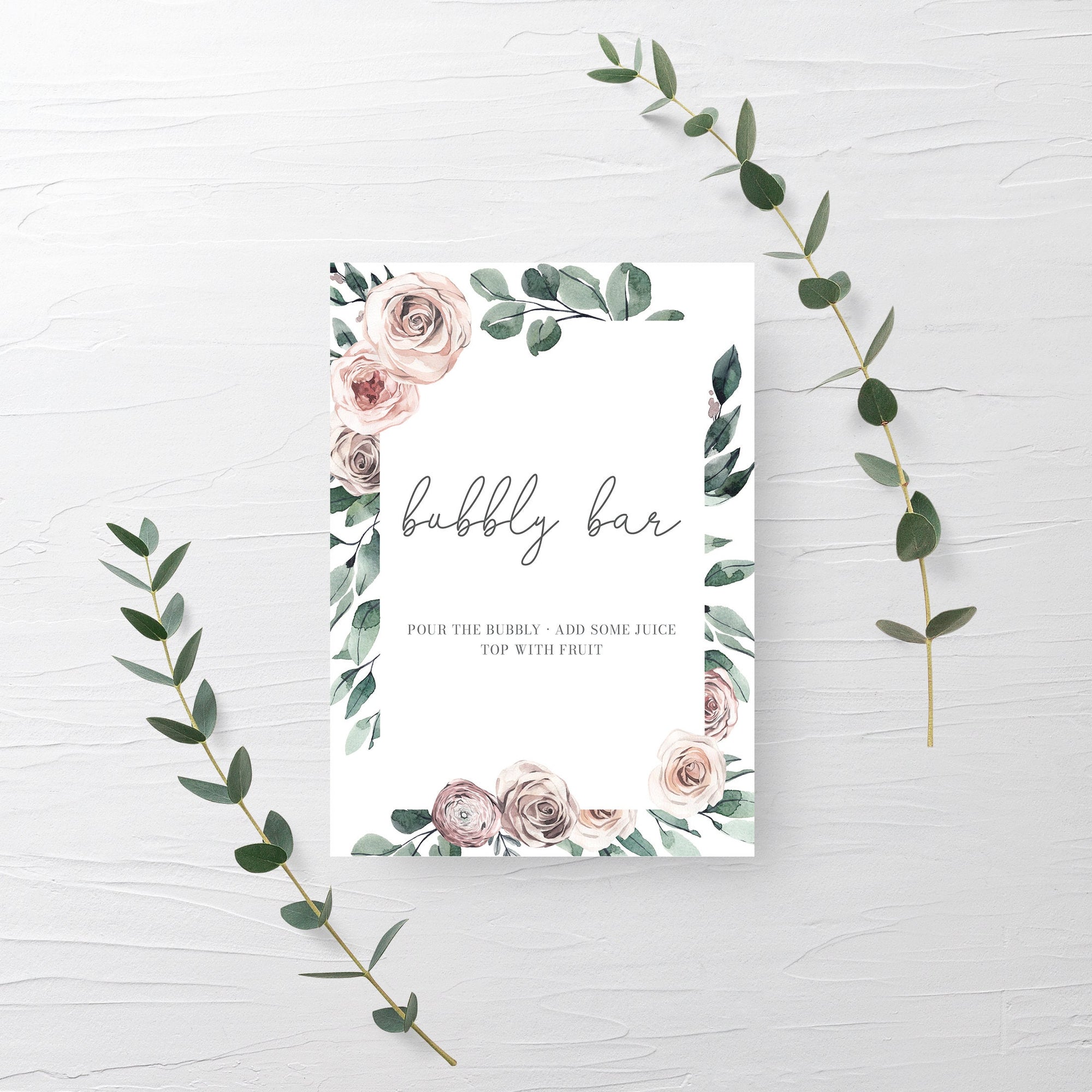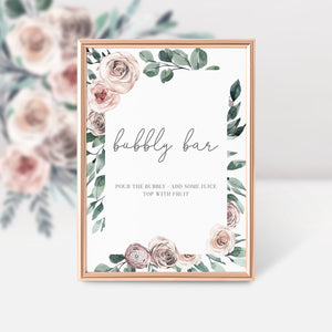 Boho Rose Bubbly Bar Sign Printable, Mimosa Bar, INSTANT DOWNLOAD - BR100