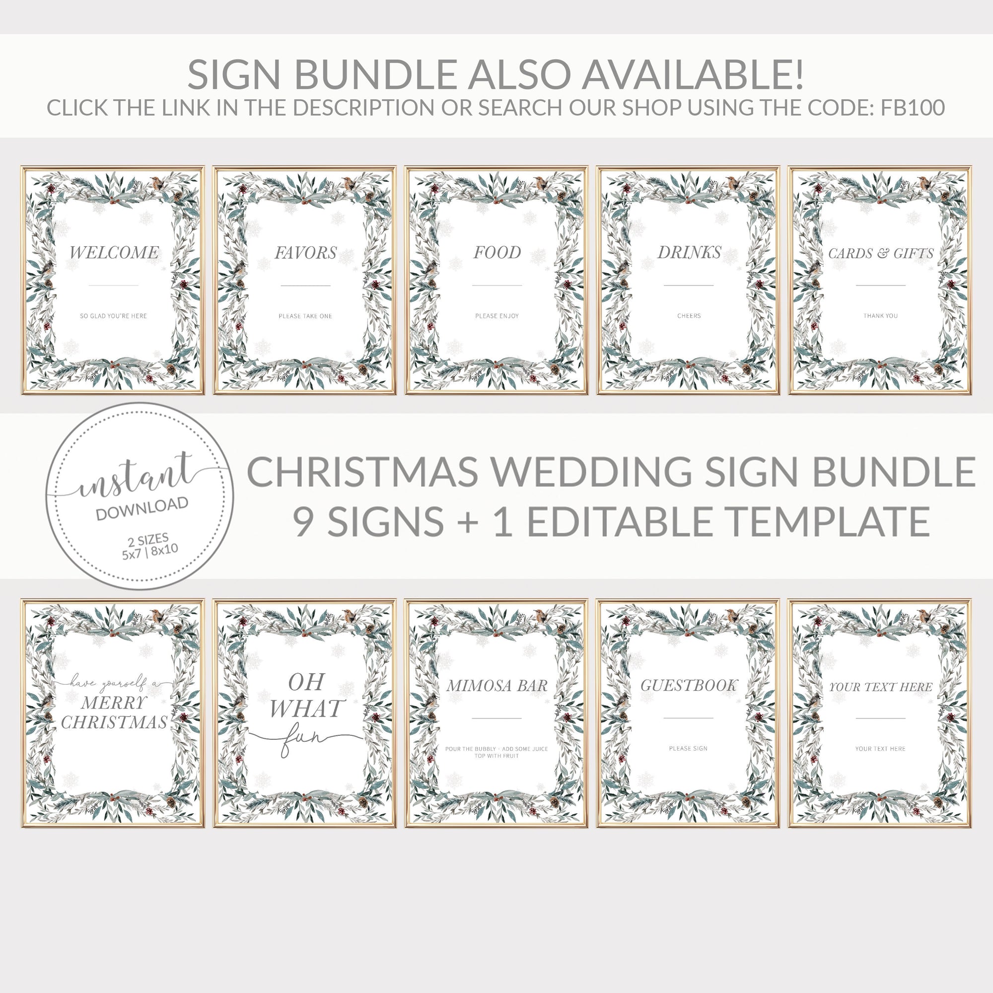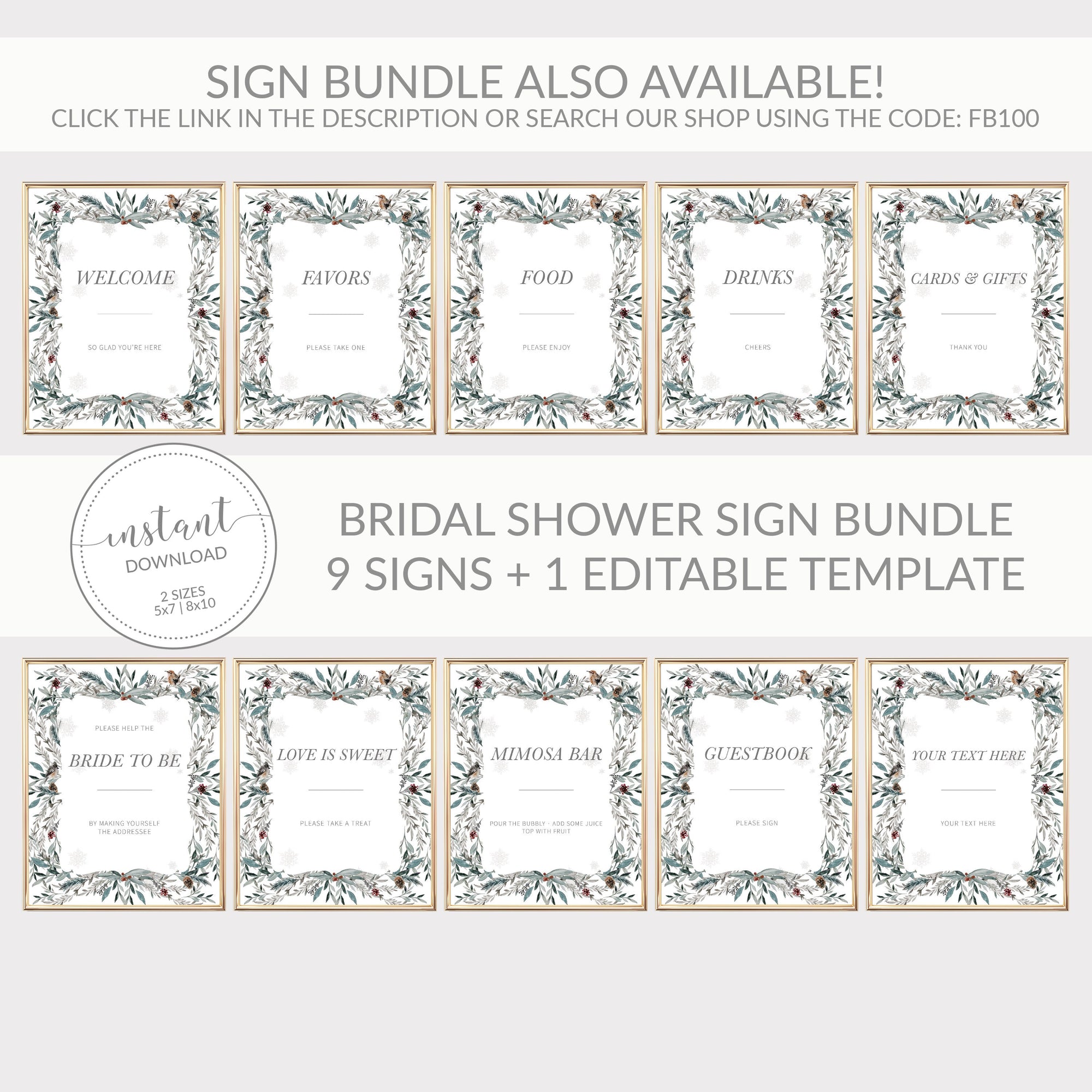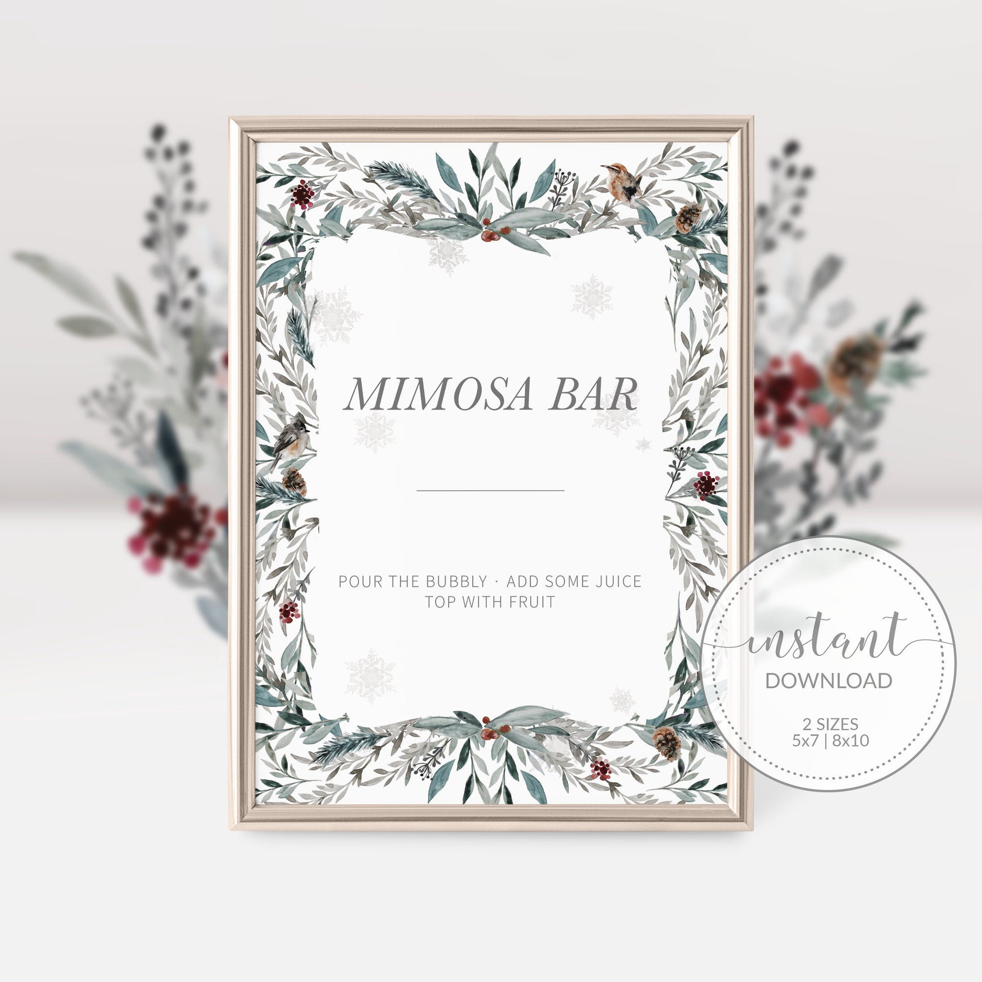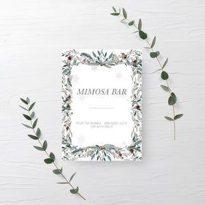 Winter Woodland Mimosa Bar Sign Printable, Christmas Brunch Sign, INSTANT DOWNLOAD - FB100