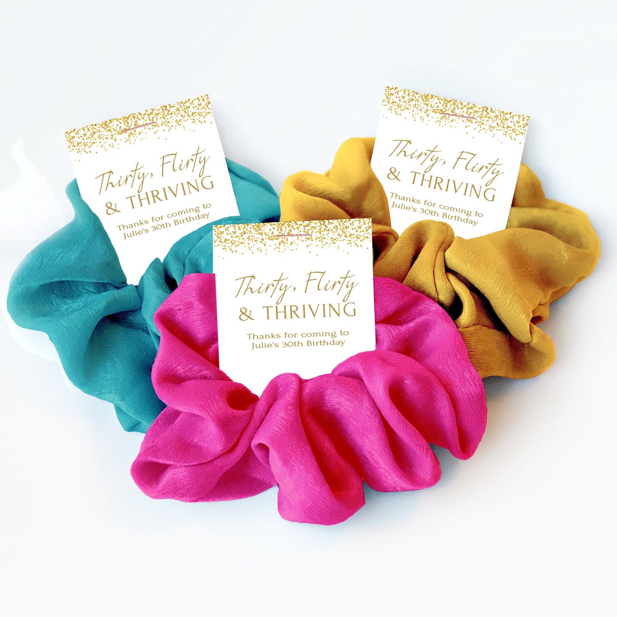 Thirty Flirty and Thriving 30th Birthday Favors, Hair Scrunchies
