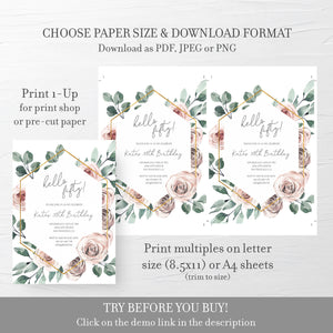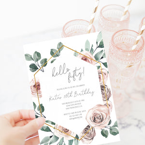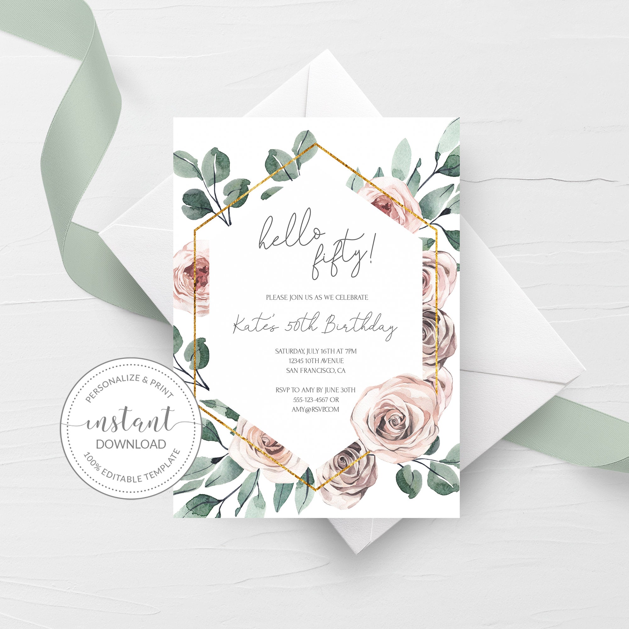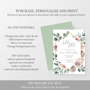 Boho Rose 50th Birthday Invitation Template, Printable Party Invite, Editable INSTANT DOWNLOAD - BR100