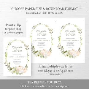 Fall Greenery Pumpkin 100th Birthday Invitation Template, Printable Birthday Invite, Editable INSTANT DOWNLOAD - PG100
