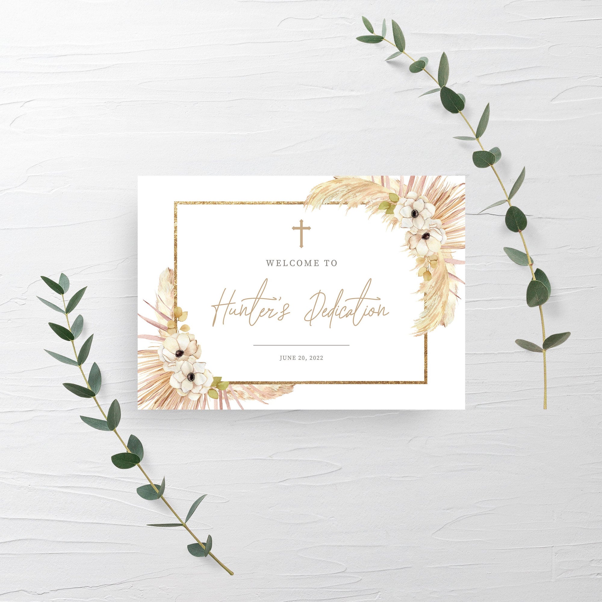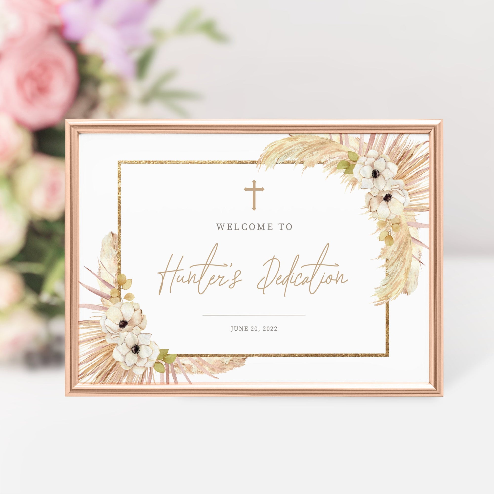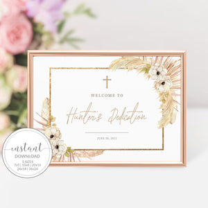 Desert Boho Baby Girl Dedication Welcome Sign Template, Printable Pampas Grass Large Welcome Sign, Editable INSTANT DOWNLOAD - DP100