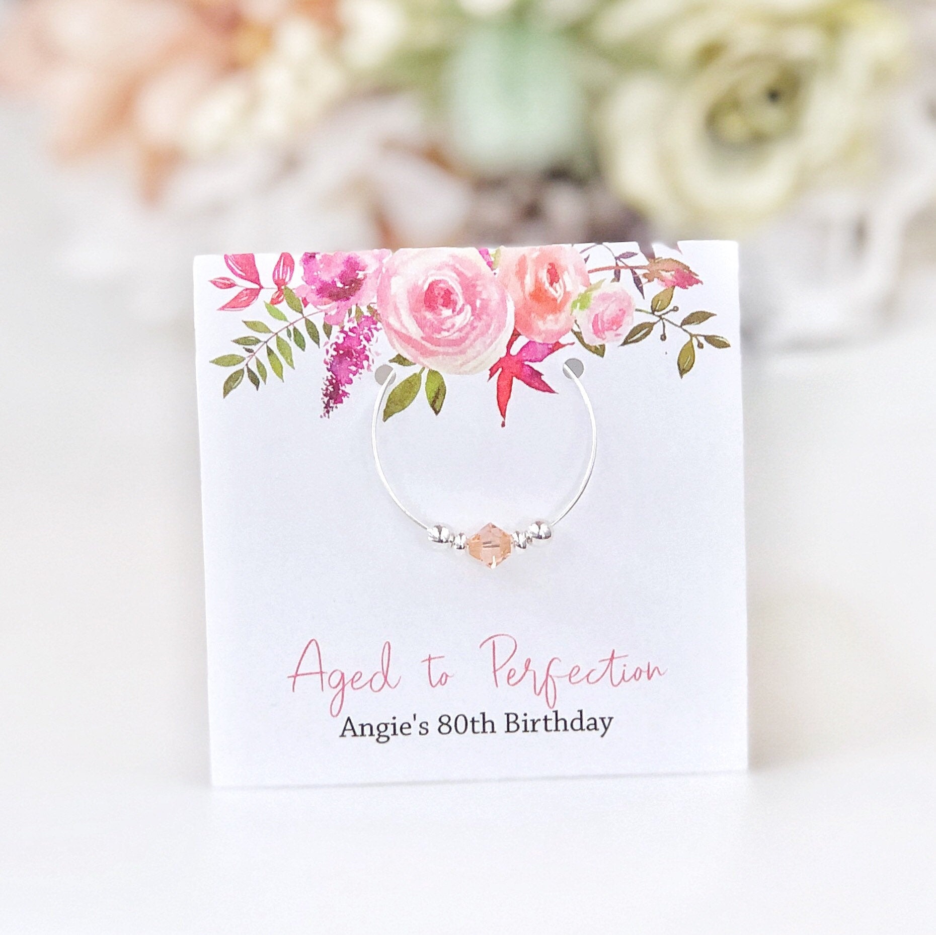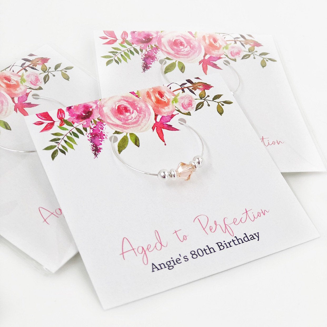 80th Birthday Party Favors, Aged to Perfection, Swarovski Crystal Wine Charm