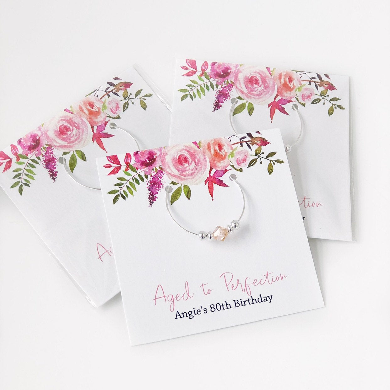 Aged to Perfection! Our Swarovski crystal wine charms are an elegant and unique way to say 'thank you' to your guests. Every time they use the charms, they will think of the fabulous details and awesome time they had celebrating this wonderful milestone.