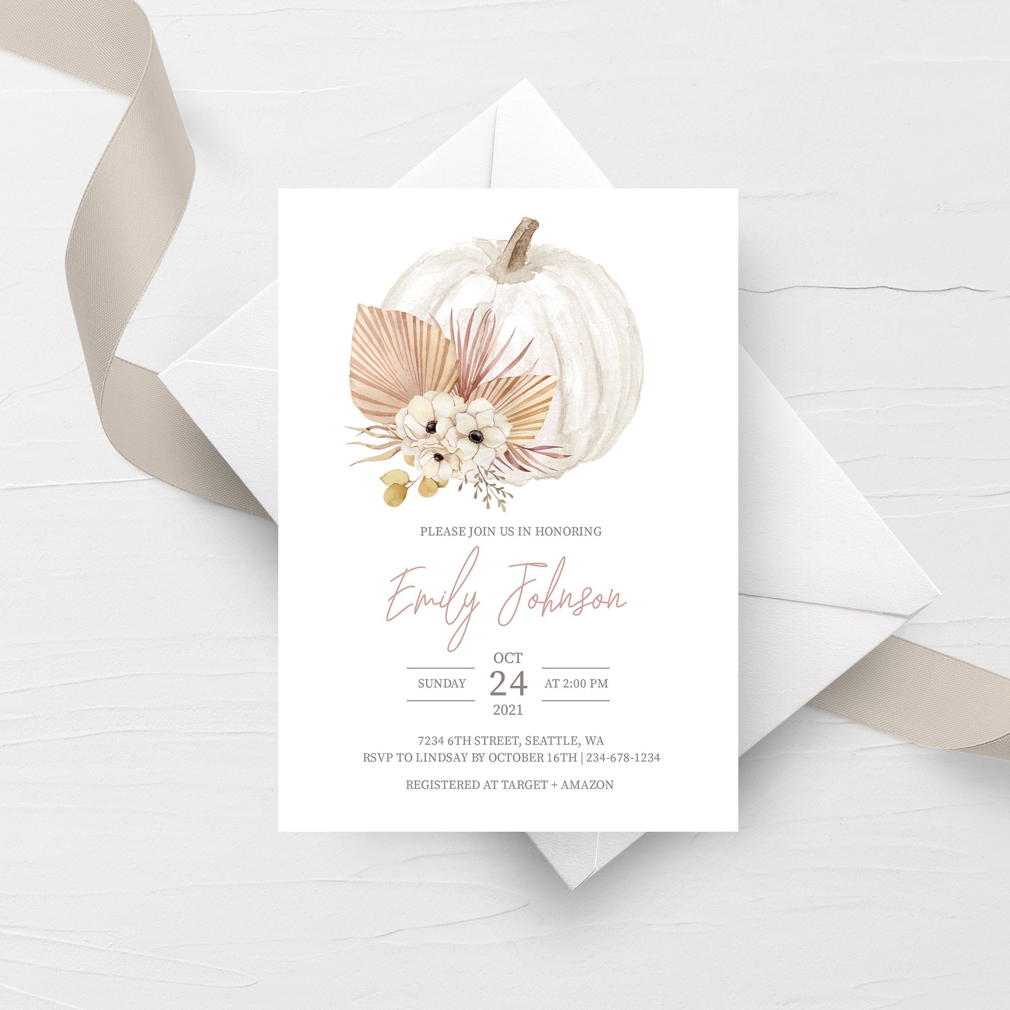 Boho Fall Bridal Shower Invitation Template, Printable Dried Pampas Pumpkin Wedding Shower Invite, Editable INSTANT DOWNLOAD - DP100