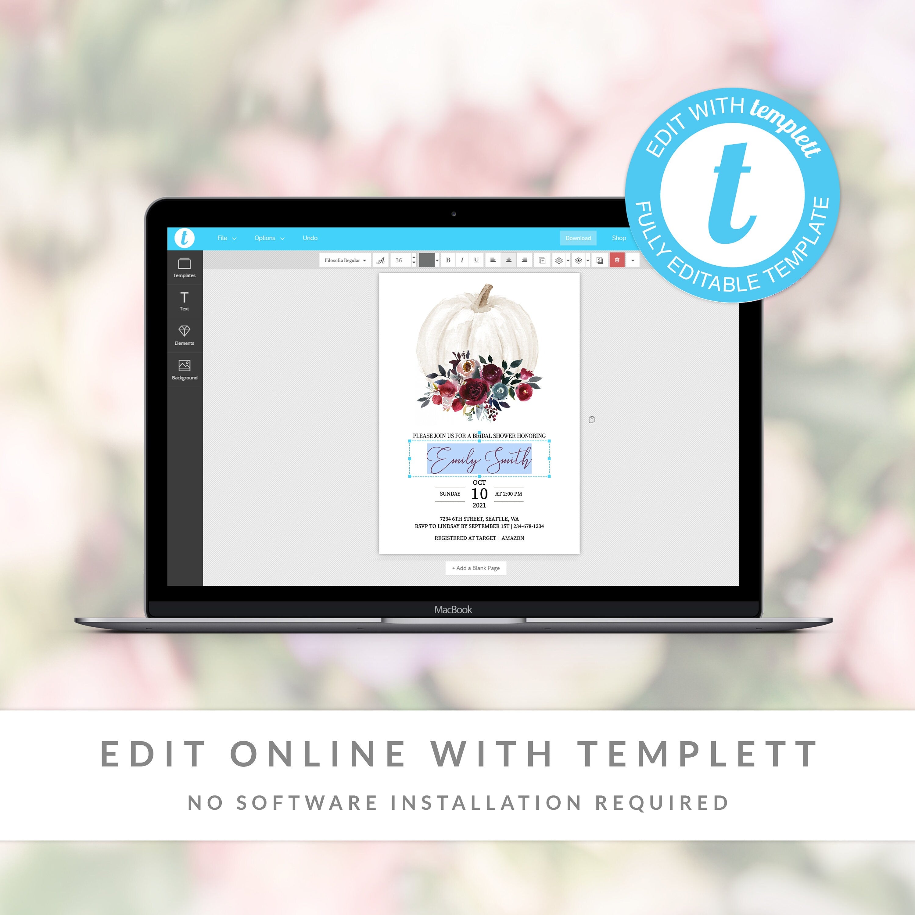 Burgundy Fall In Love Bridal Shower Invitation, Printable Floral Pumpkin Invite, Editable INSTANT DOWNLOAD - BB100