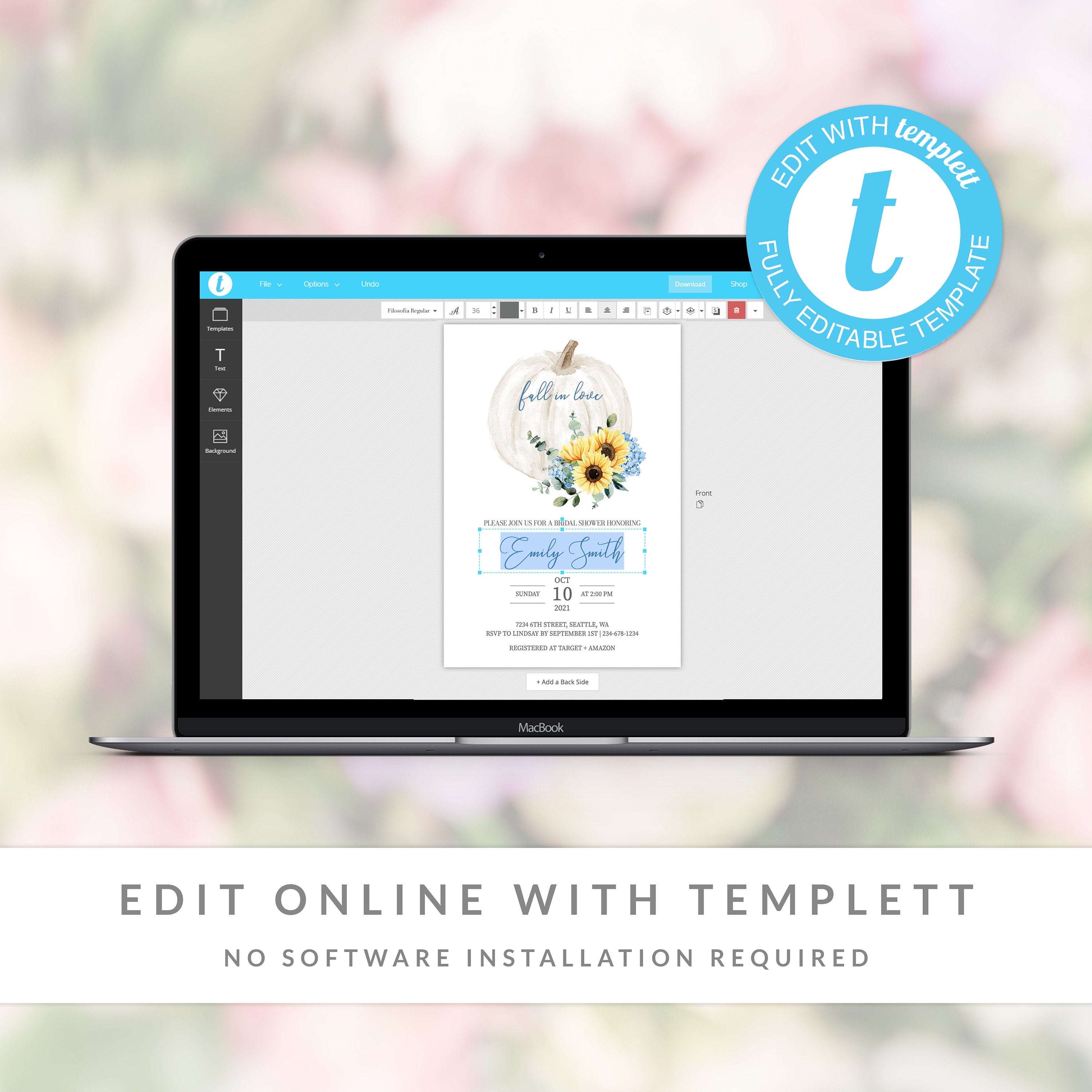 Fall In Love Bridal Shower Invitation Template, Printable Sunflower and Pumpkin Wedding Shower Invite, Editable INSTANT DOWNLOAD - S100