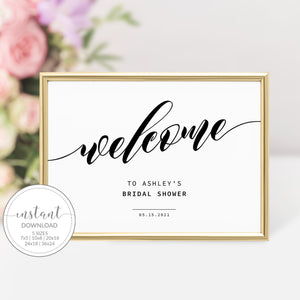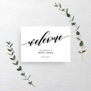 Black Script Bridal Shower Welcome Sign Template, Printable Minimalist Large Welcome Sign, INSTANT DOWNLOAD - SFB100