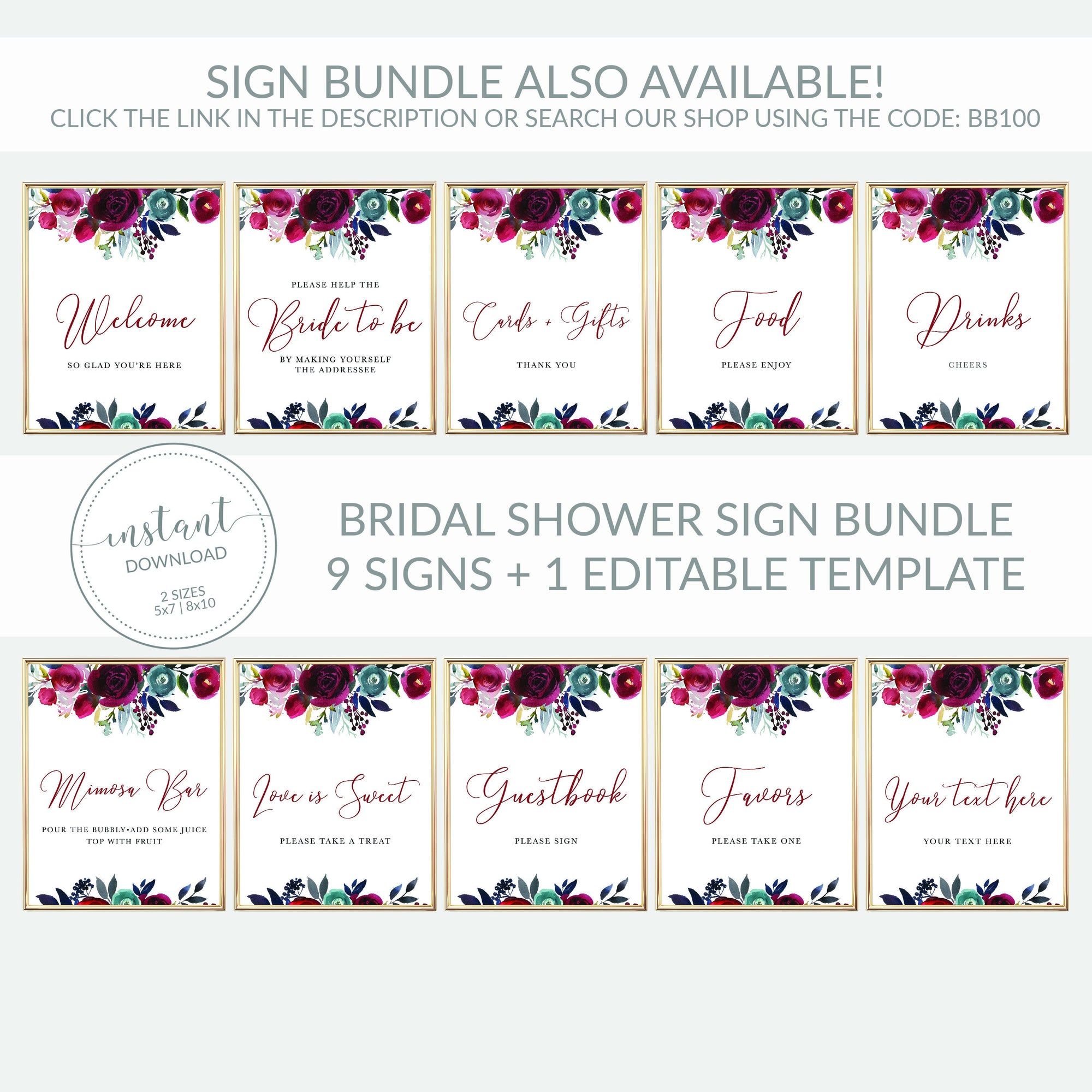 Burgundy and Navy Sanitize Before Entering Welcome Sign Printable, INSTANT DOWNLOAD - BB100