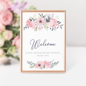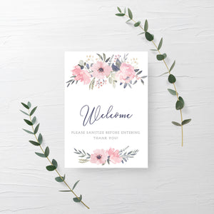 Navy and Blush Floral Sanitize Before Entering Sign Printable, Welcome Sign, INSTANT DOWNLOAD - NB100