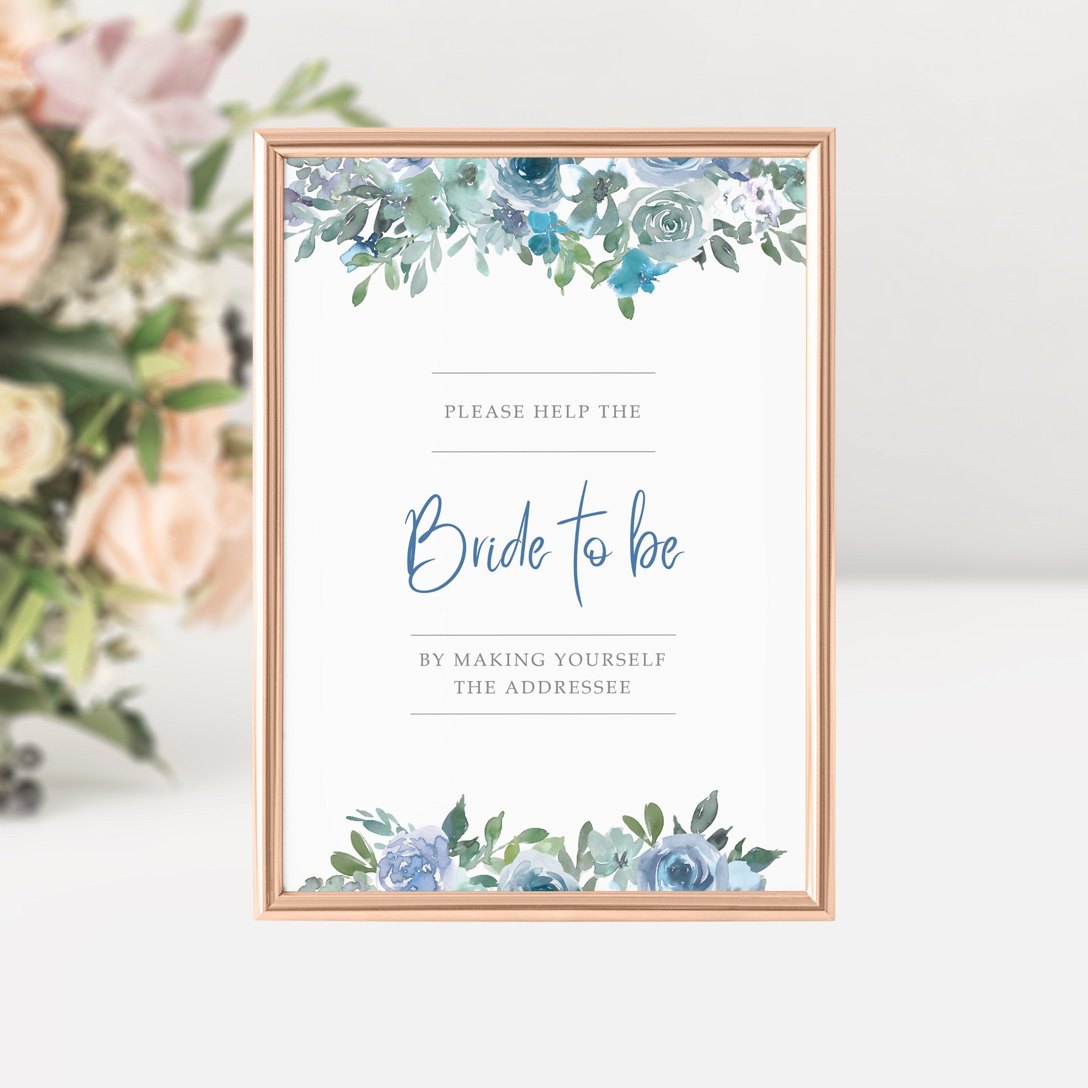 Blue Floral Bridal Shower Address an Envelope Sign Printable, Help The Bride to Be Sign, INSTANT DOWNLOAD - BF100