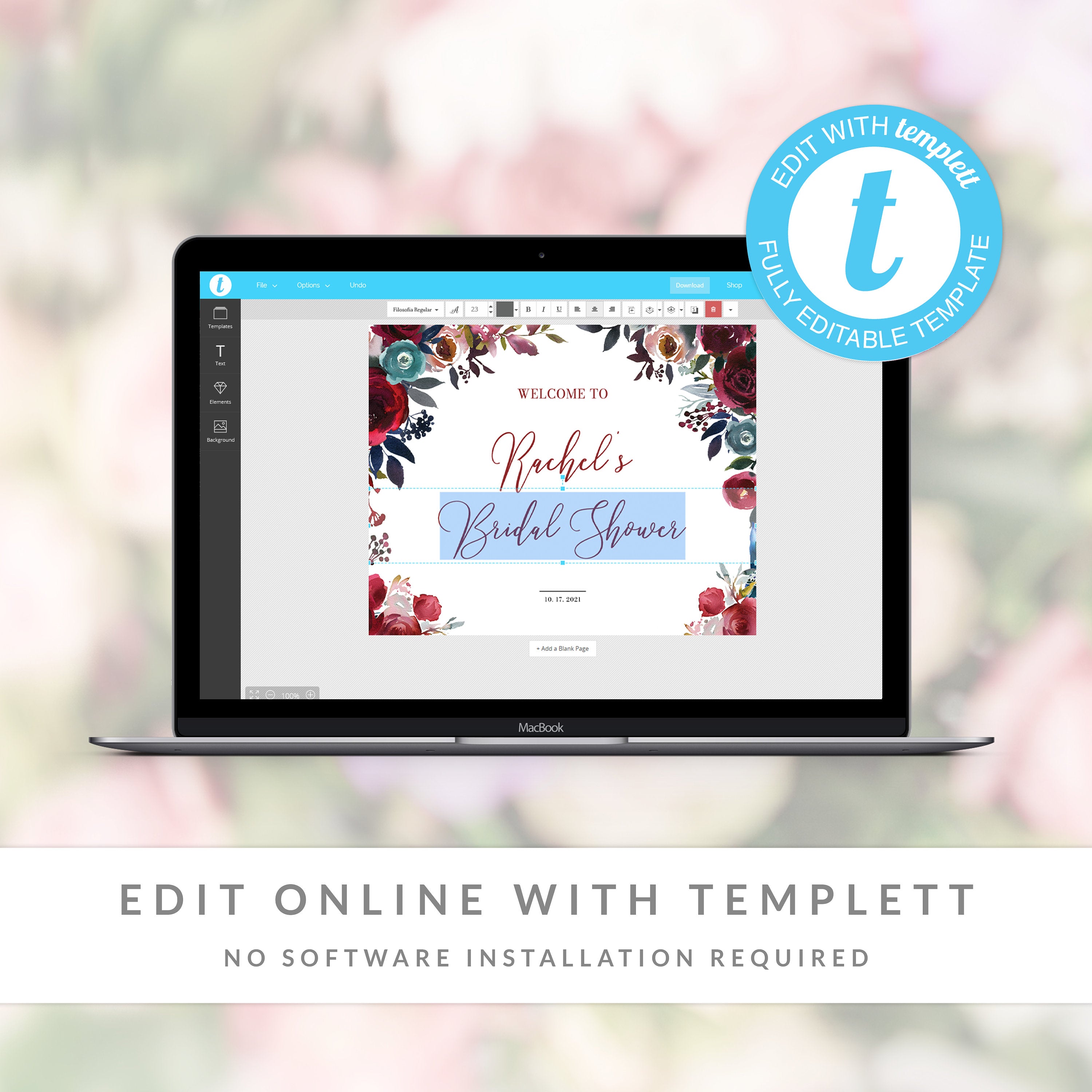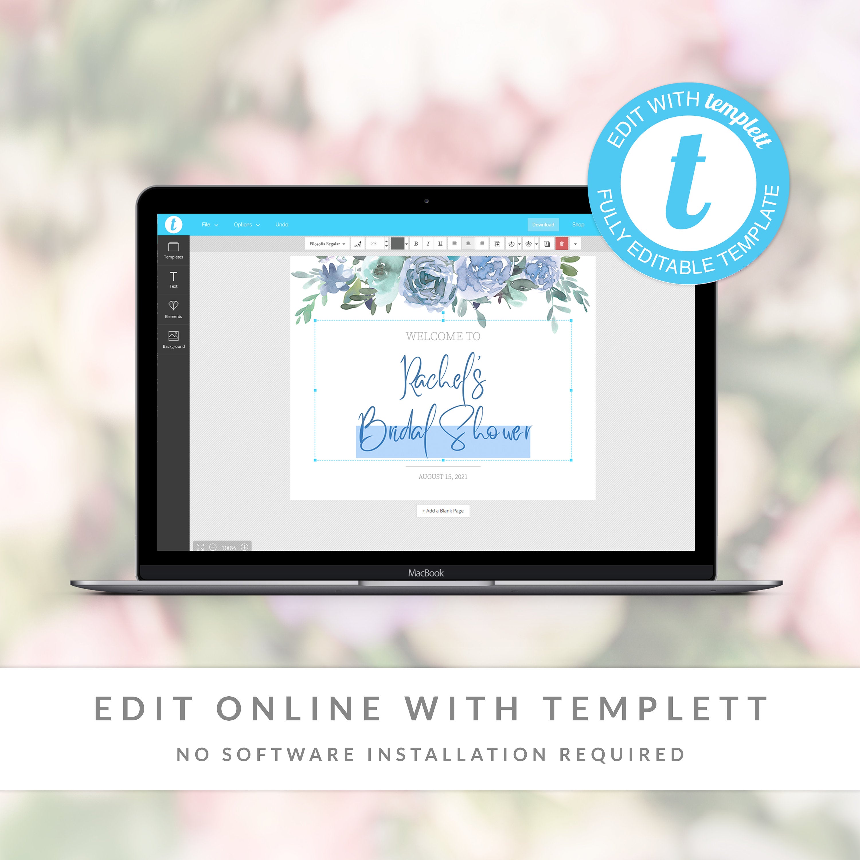 Blue Floral Bridal Shower Welcome Sign Template, Printable Large Welcome Sign, Editable INSTANT DOWNLOAD - BF100
