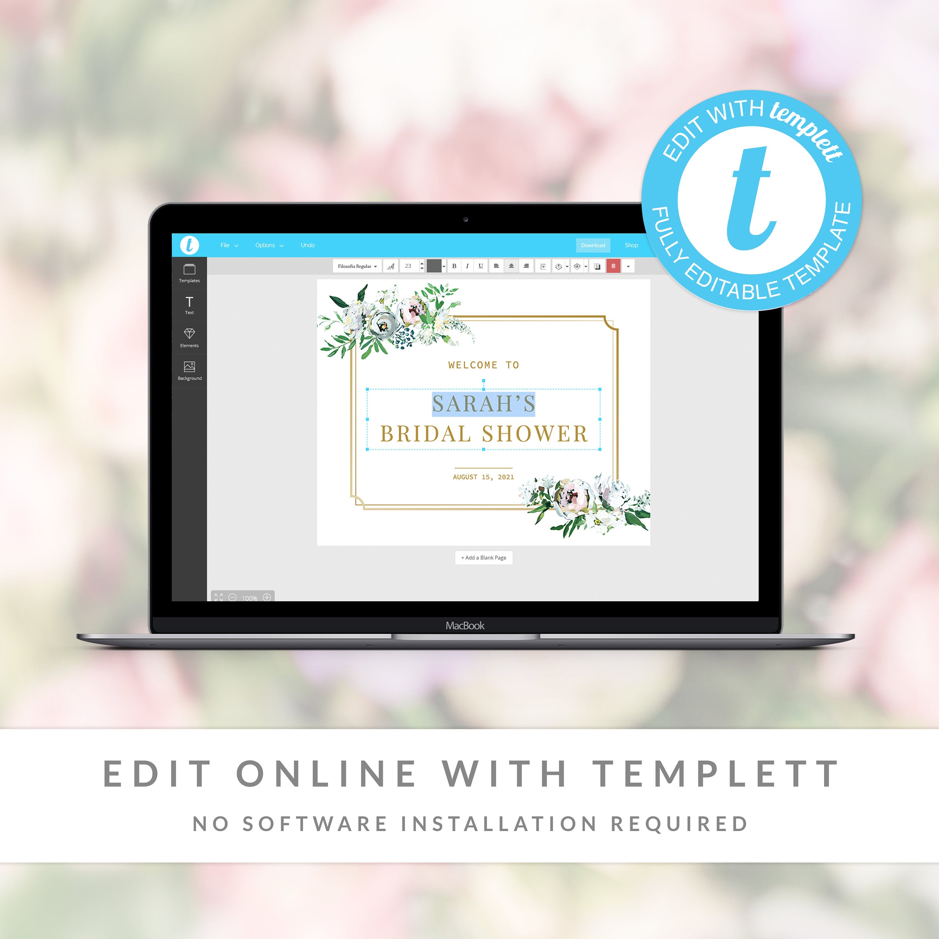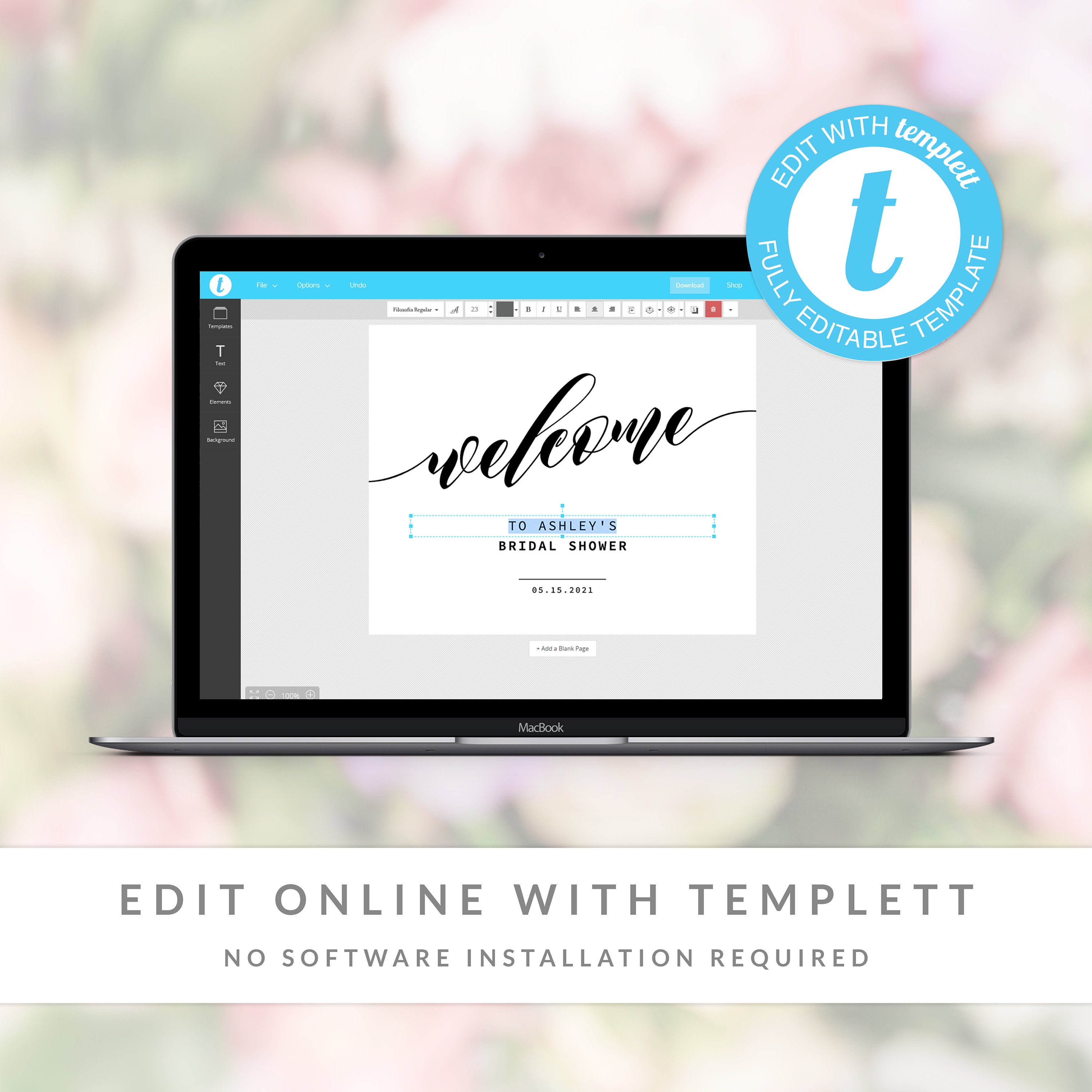 Blush Floral Greenery Bridal Shower Welcome Sign Template, Printable Large Welcome Sign, Editable INSTANT DOWNLOAD - BGF100