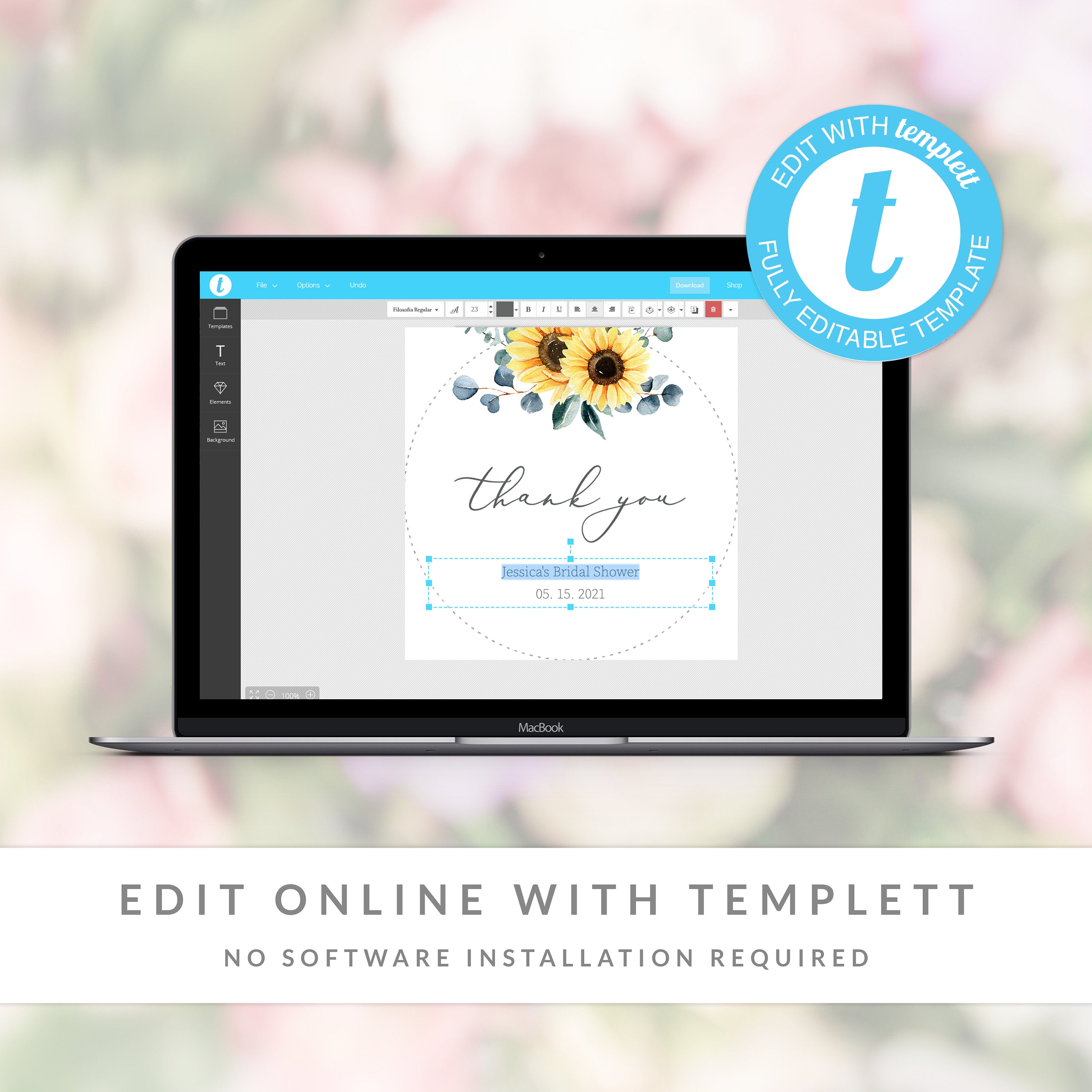 Sunflower Bridal Shower Favor Tags Template, Printable Thank You Tags, Round Square or Rectangle, Editable INSTANT DOWNLOAD - S100