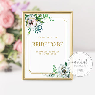 Blush Floral Greenery Bridal Shower Address the Envelope Sign, Printable Gold Help The Bride Sign, INSTANT DOWNLOAD - BGF100
