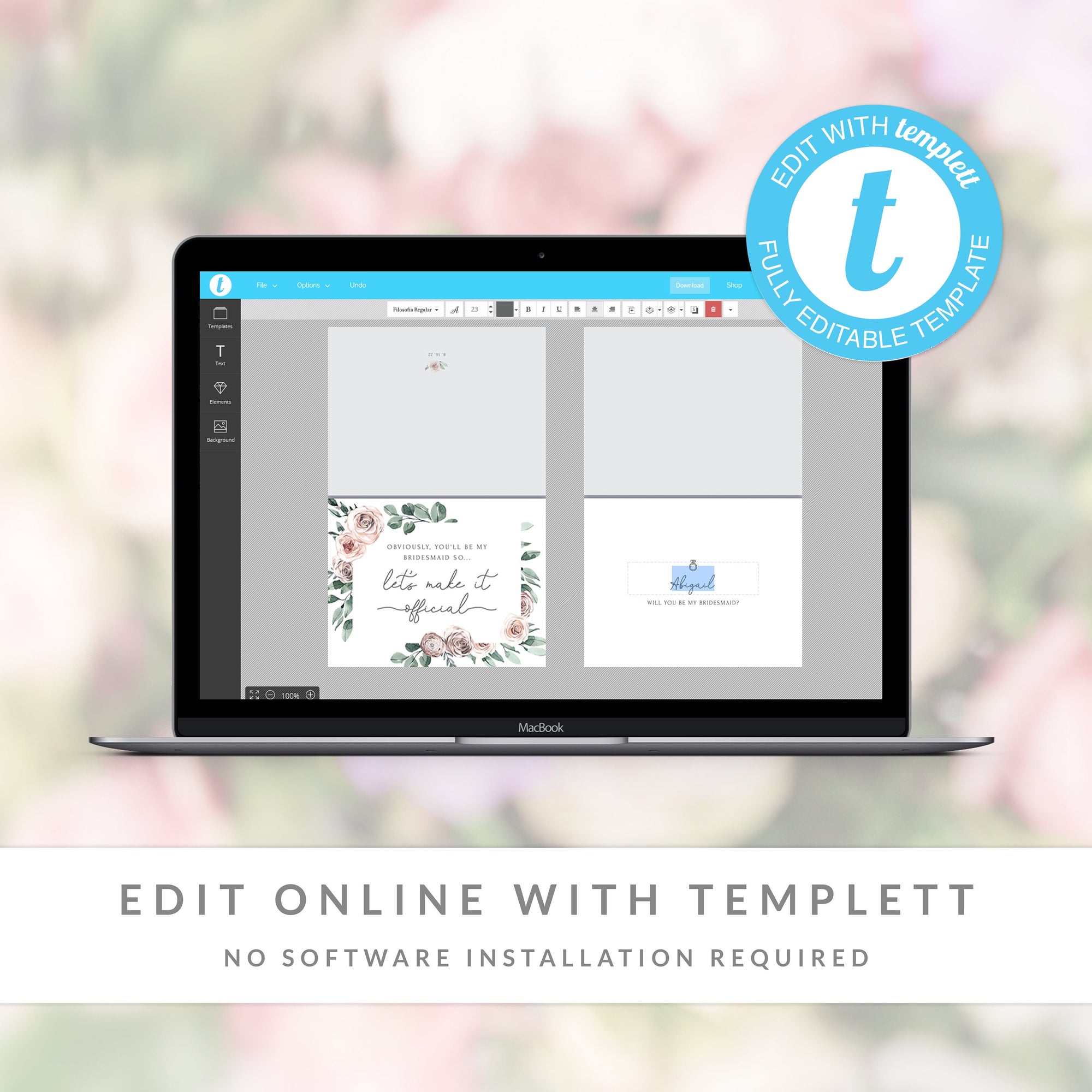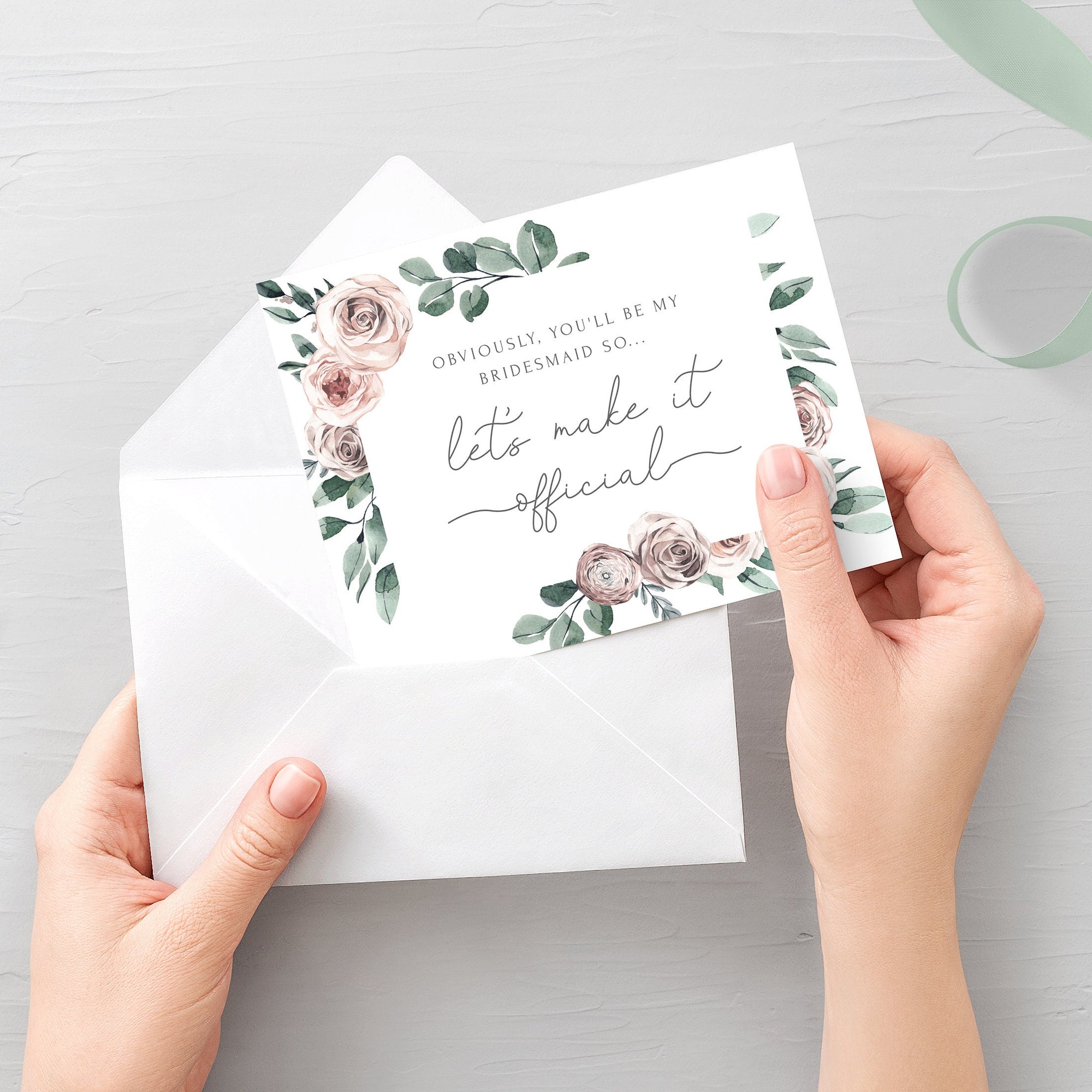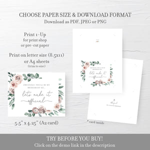 Boho Rose Funny Bridesmaid Proposal Card Template, Printable Let's Make It Official Bridesmaid Card, Editable INSTANT DOWNLOAD, A2 Size - BR100