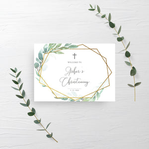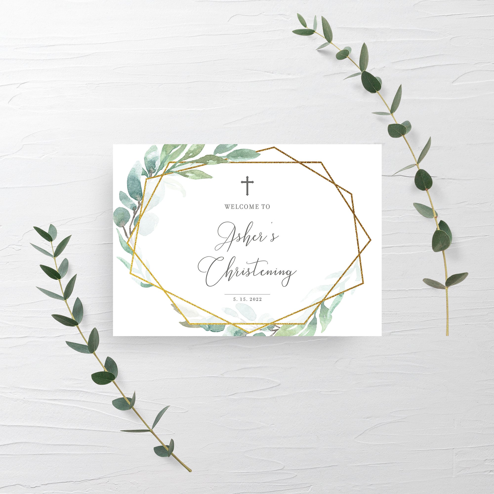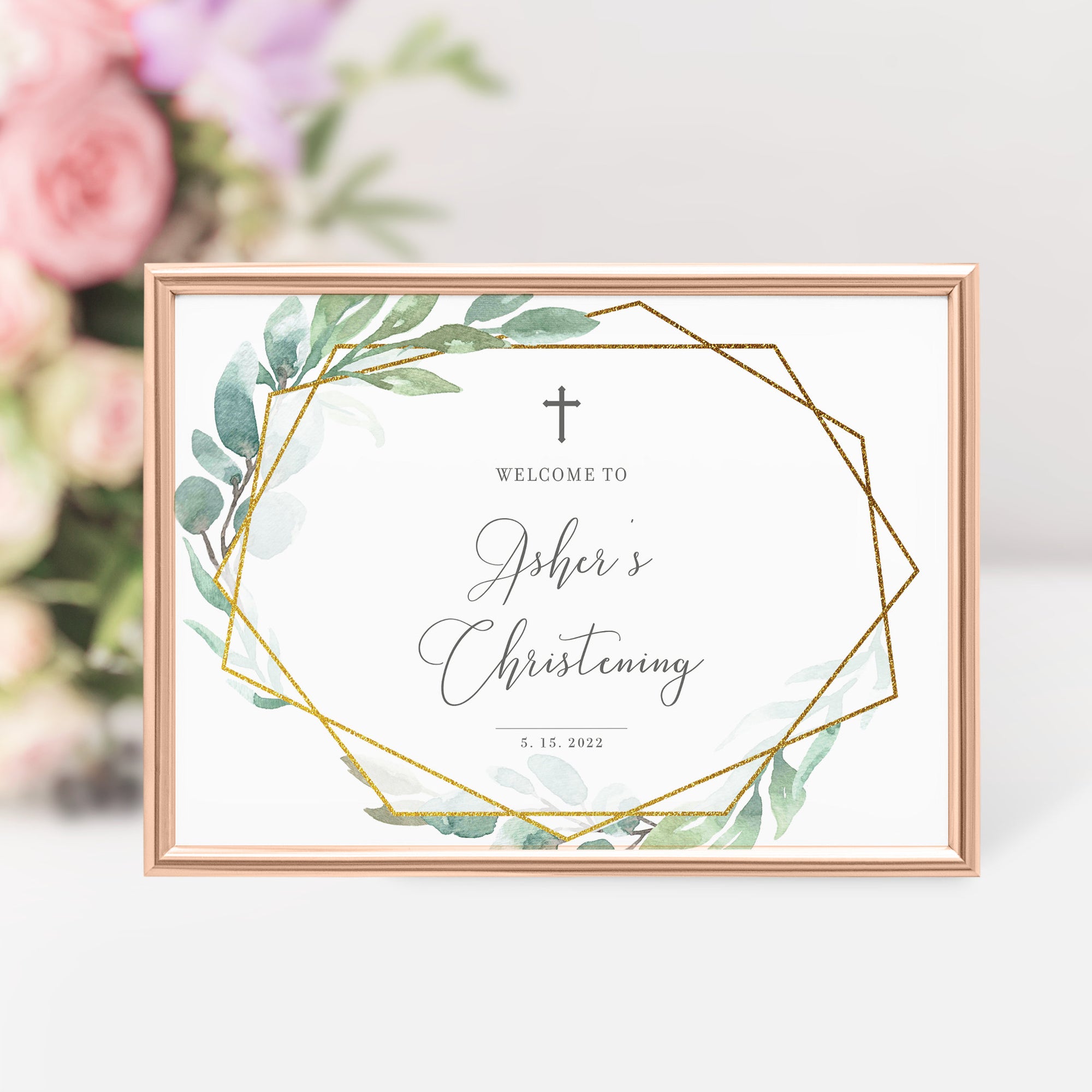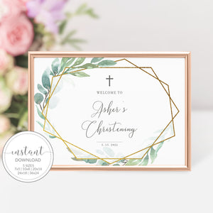 Geometric Gold Greenery Boy Christening Welcome Sign Template, Printable Large Welcome Sign, Editable INSTANT DOWNLOAD - GFG100