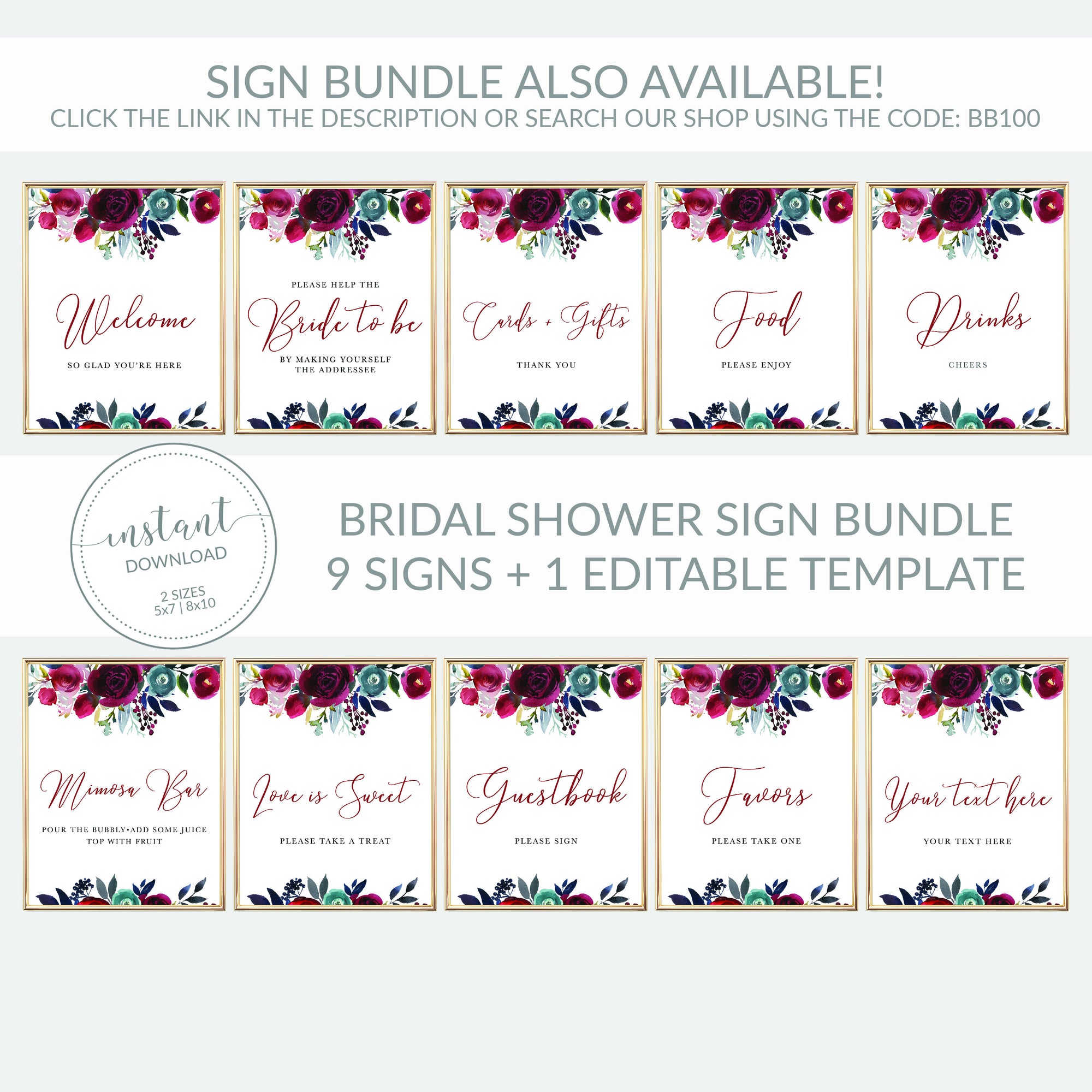 Burgundy and Navy Favors Sign Printable, INSTANT DOWNLOAD - BB100