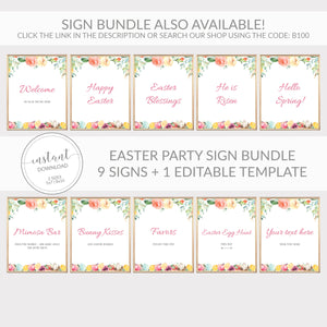 Bunny Kisses and Easter Wishes Easter Sign Printable, INSTANT DOWNLOAD - B100