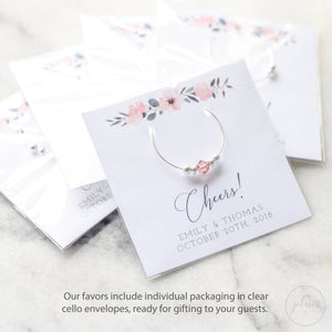 Each Swarovski crystal wine charm comes affixed to a card and packaged in a clear cello envelope, perfect for gifting to your guests.