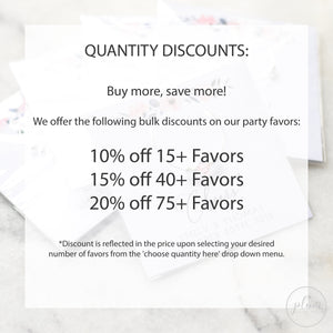 You have the option of choosing one color for all favors, the 'Fiesta' assortment of colors, or a custom assortment.