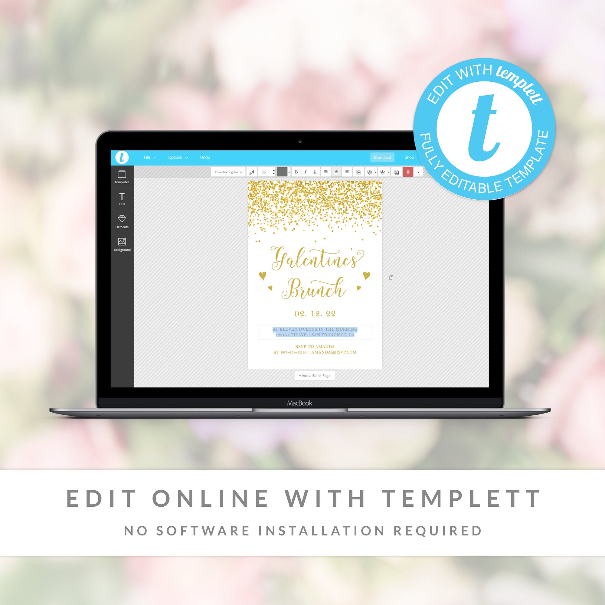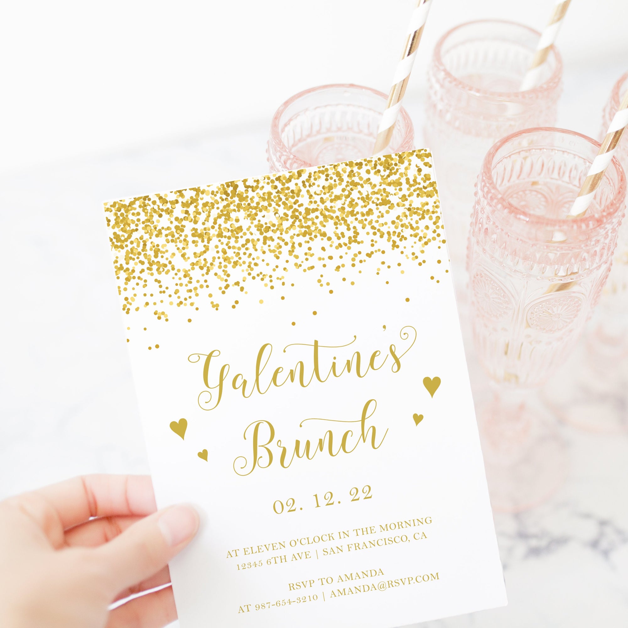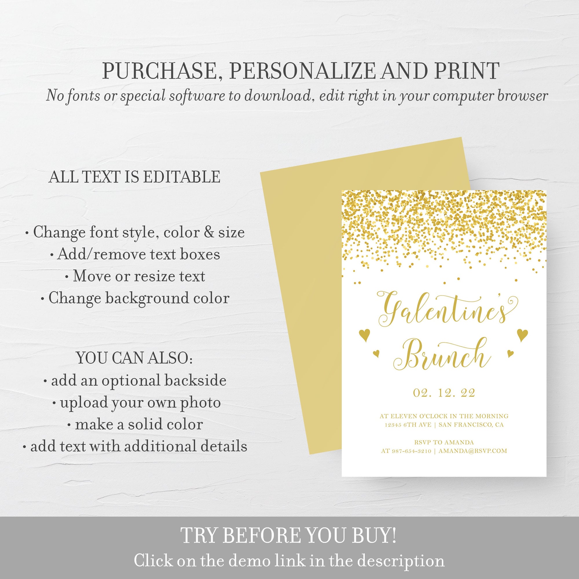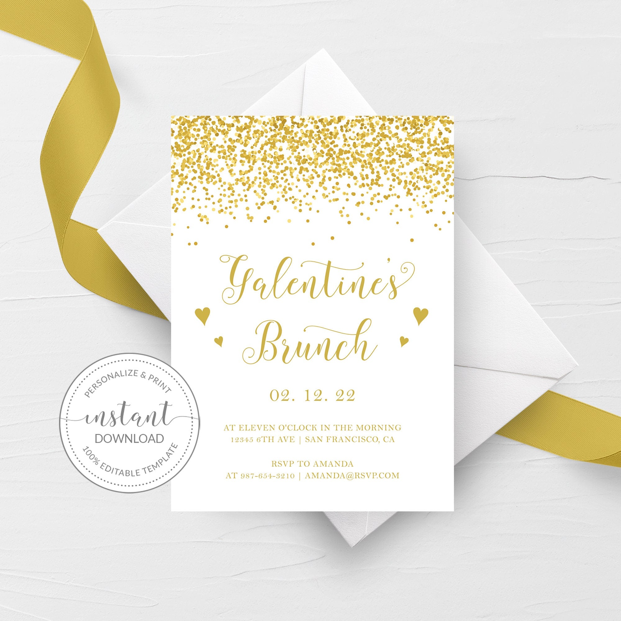 Galentines Brunch Invitation Template, Printable Galentine Party Invite, Editable INSTANT DOWNLOAD - V100