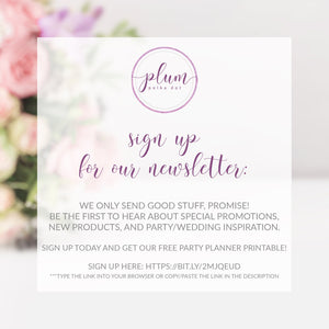 We only send good stuff, promise! Be the first to hear about special promotions, new products, and party/wedding inspiration. Sign up today and get our free party planner printable!