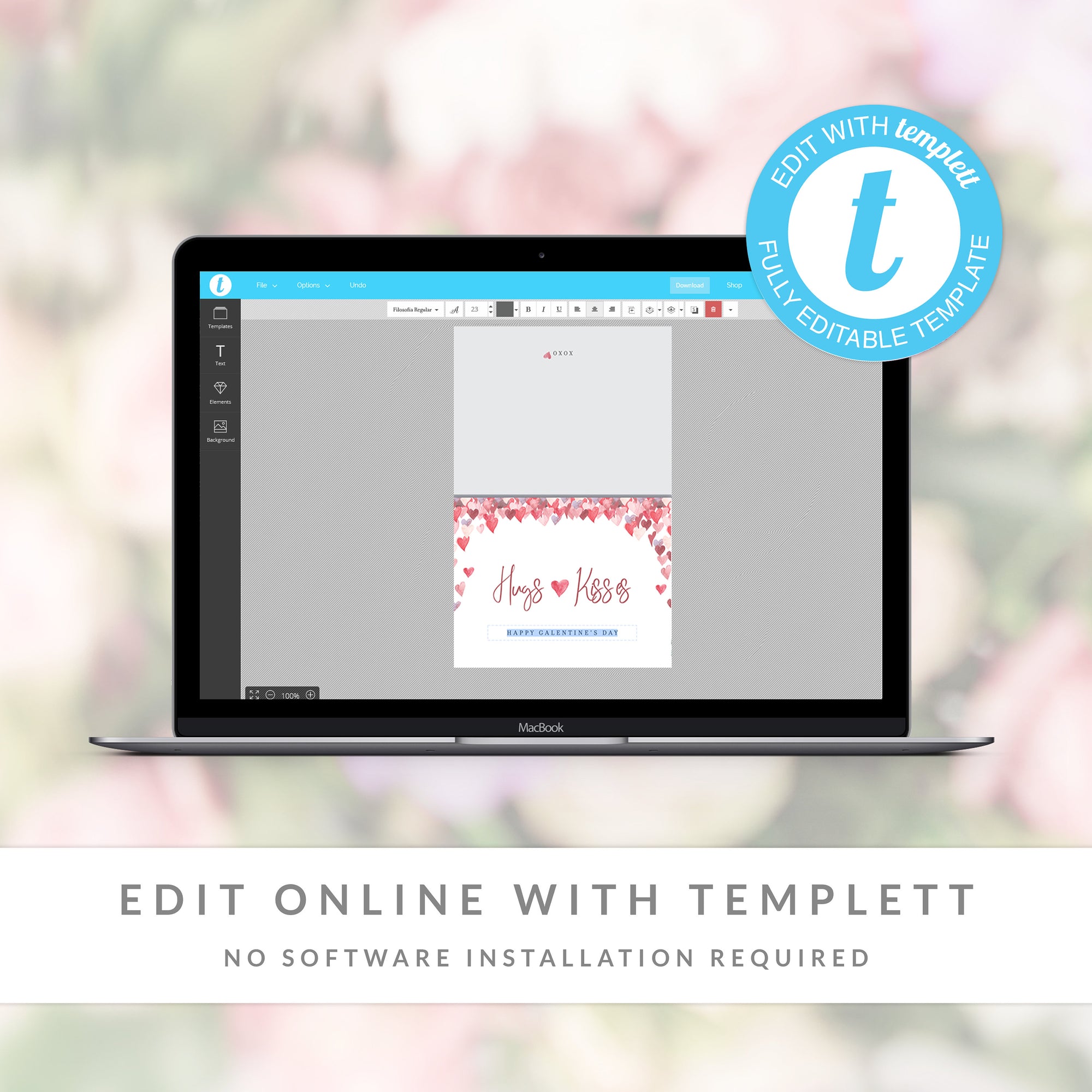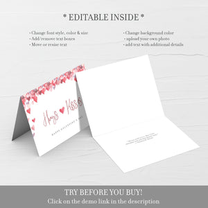 Galentines Hearts Hugs & Kisses Card Template, Printable Be My Galentine Card, Editable INSTANT DOWNLOAD - VH100