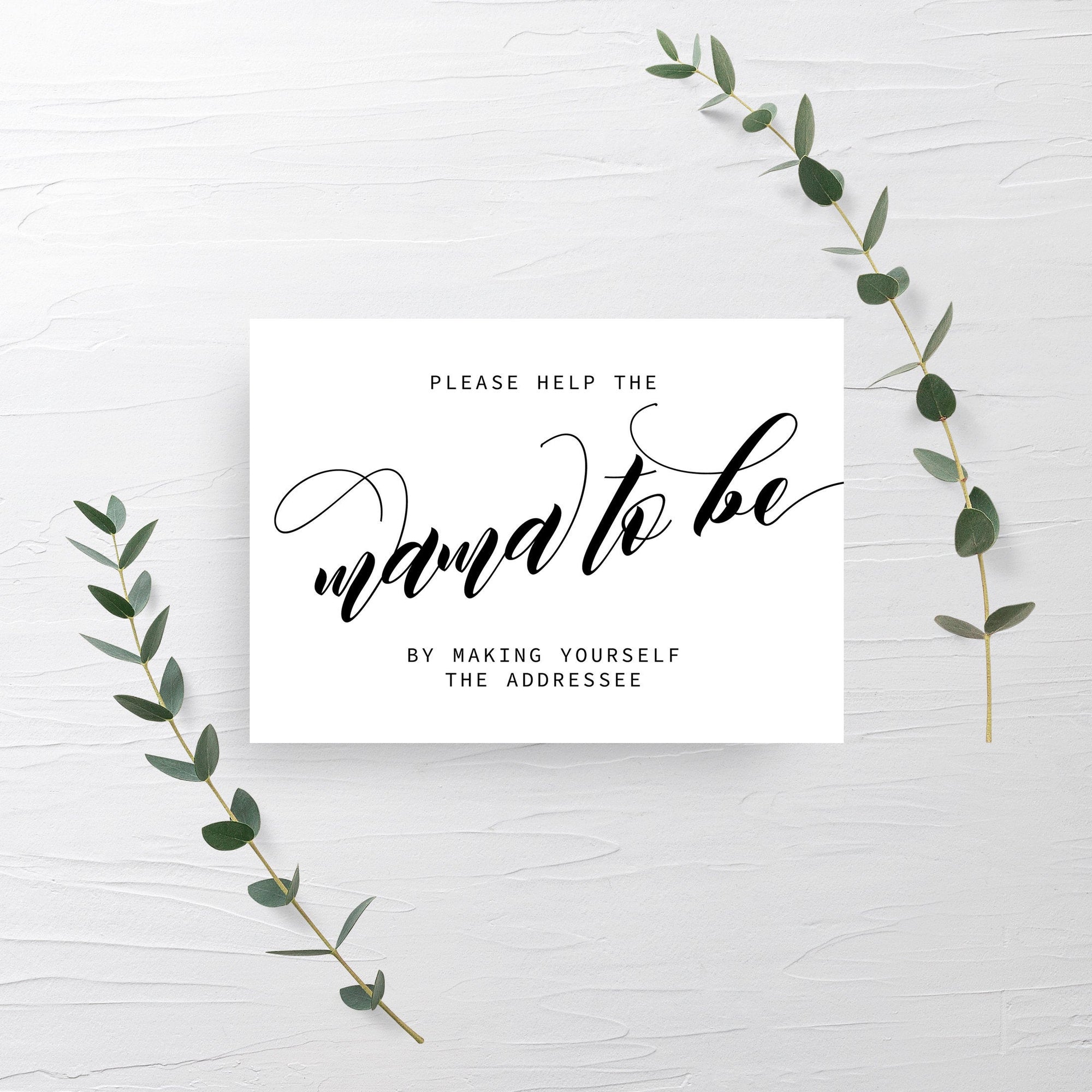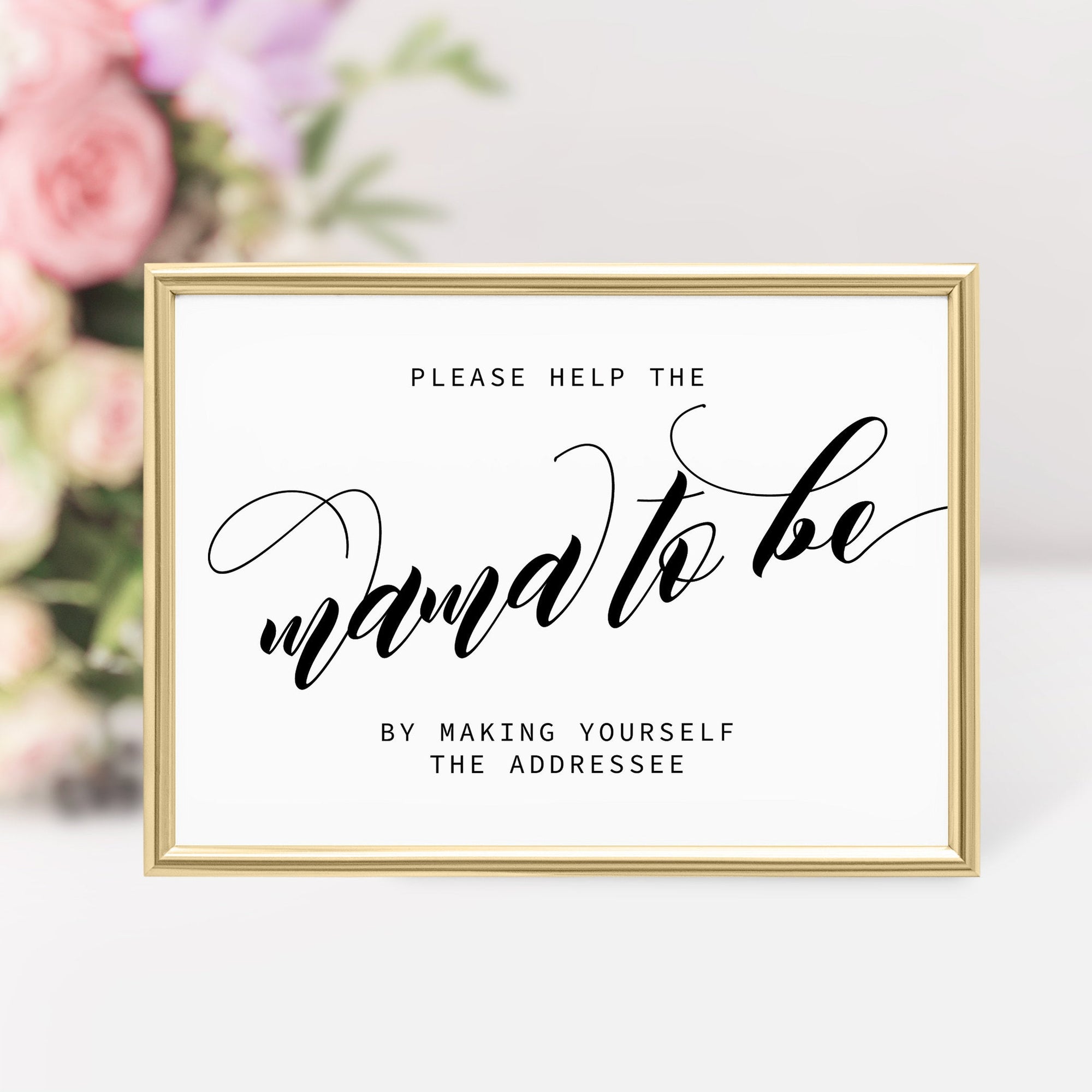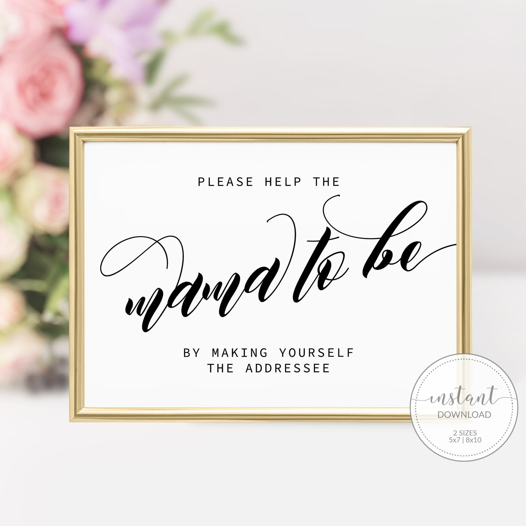 Black Script Baby Shower Address an Envelope Sign Printable, Minimalist Help The Mama To Be Sign, INSTANT DOWNLOAD - SFB100