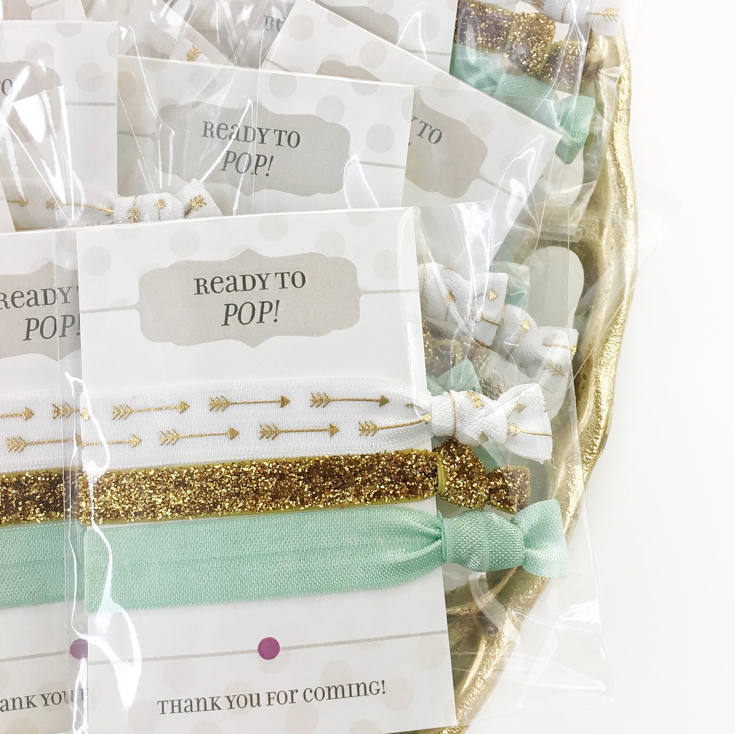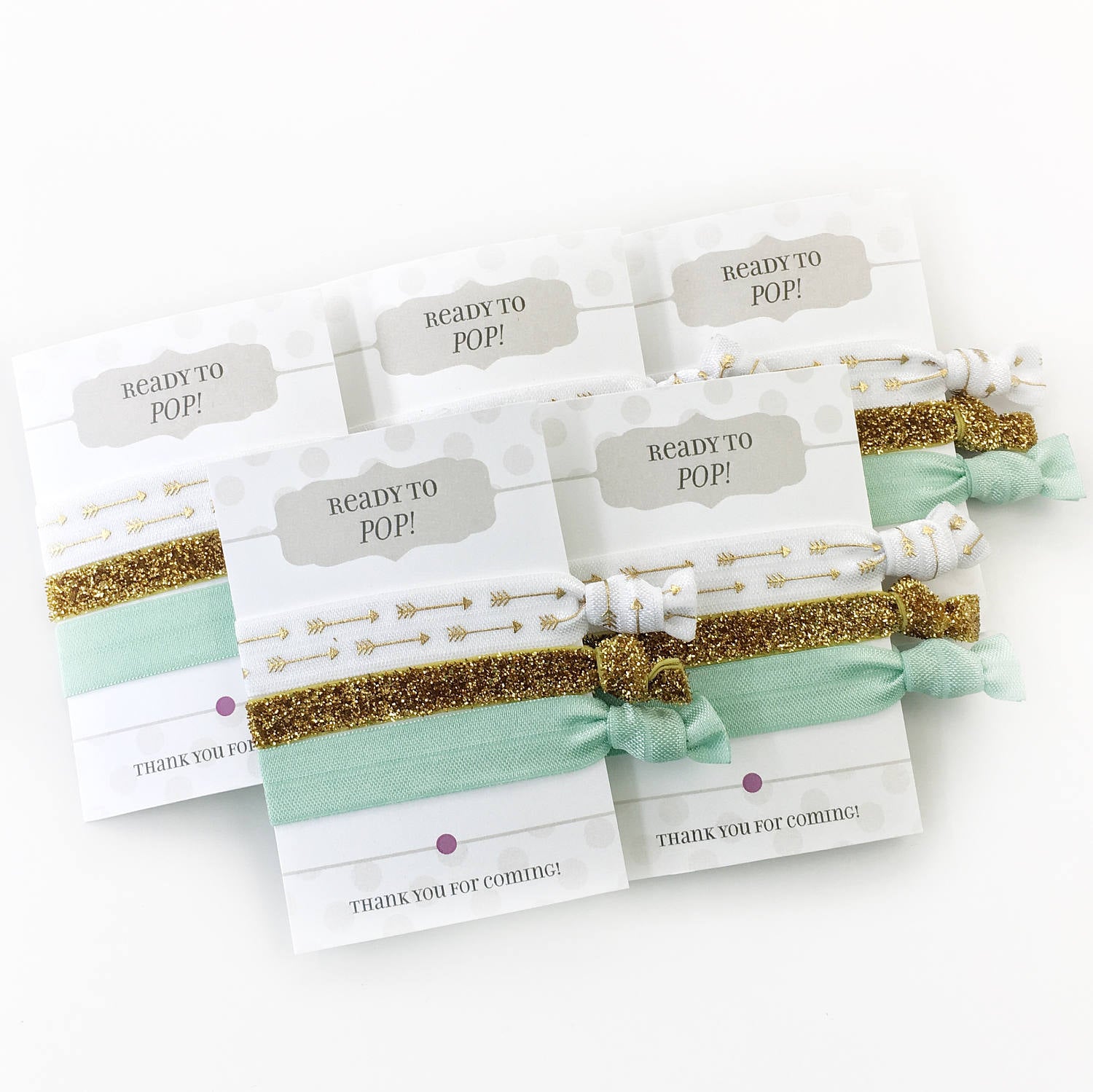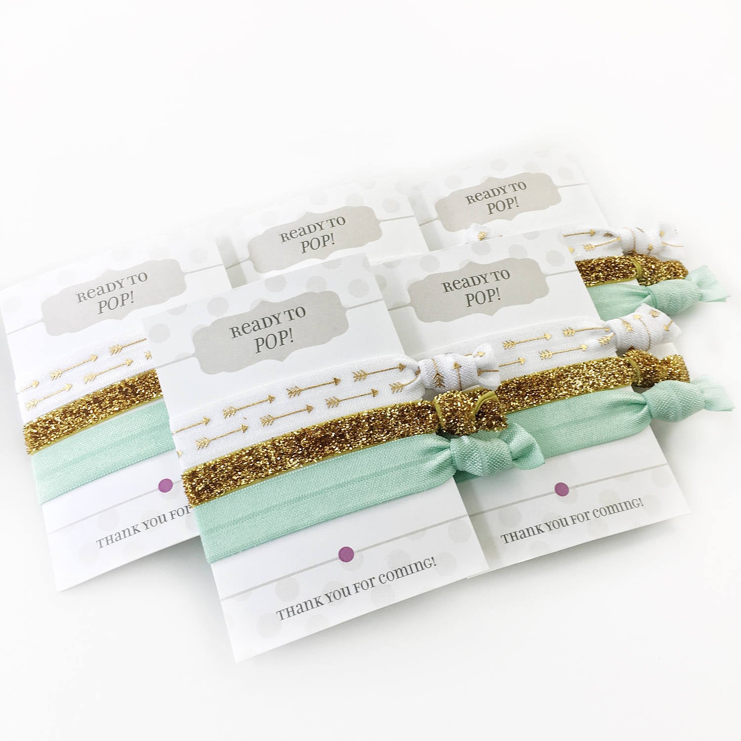 Ready to Pop Gender Neutral Baby Shower Favors, Mint and Gold, Hair Ties