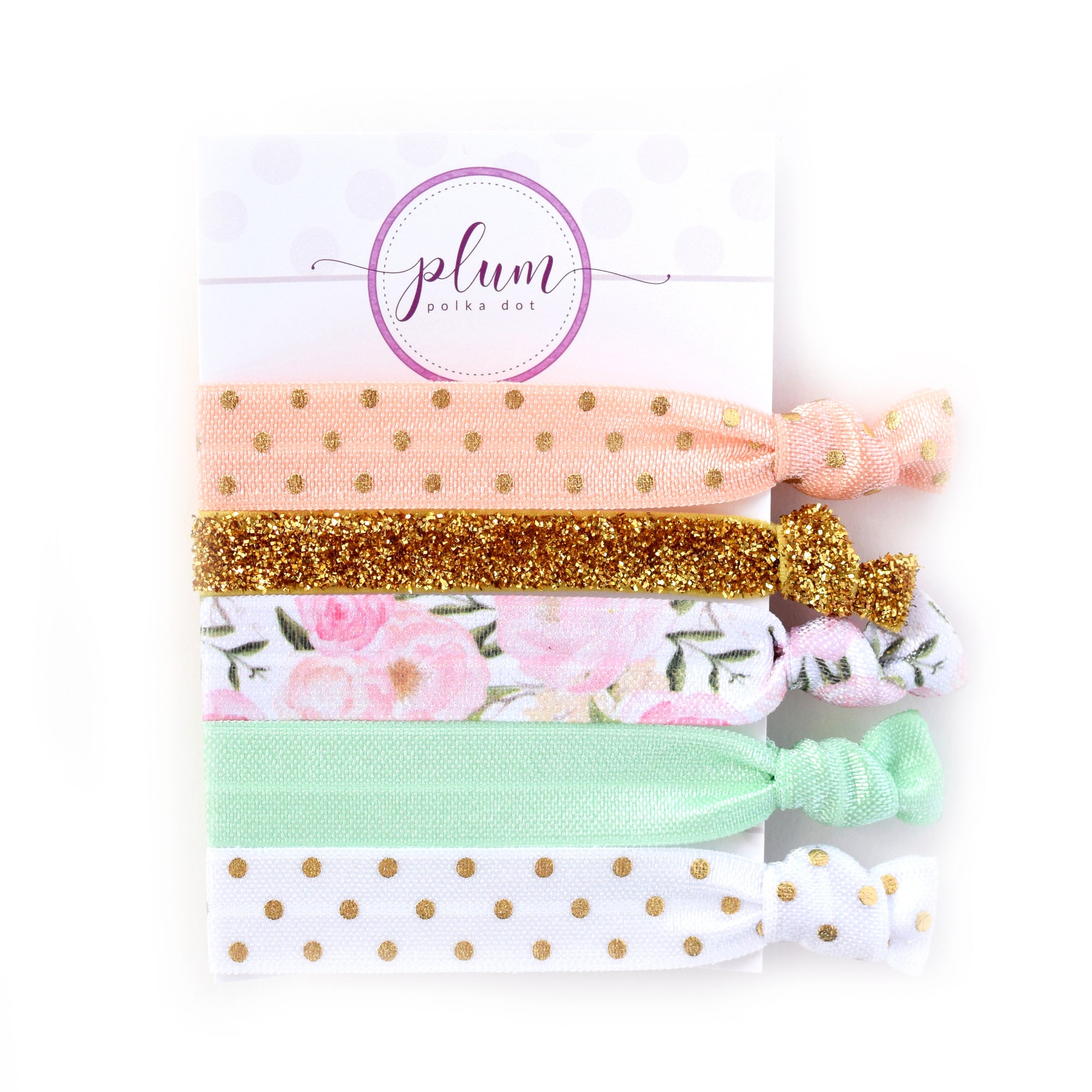 Collection of 5 soft elastic hair ties in a vintage floral theme! The perfect accessory for both girls and women.
