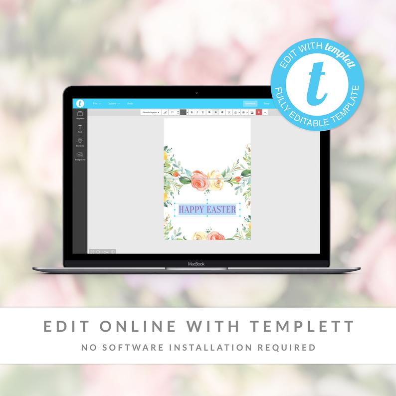 Easter Greeting Card Template, Printable Easter Note Card, Folded and Flat Cards 5X3.5, Editable INSTANT DOWNLOAD - B100
