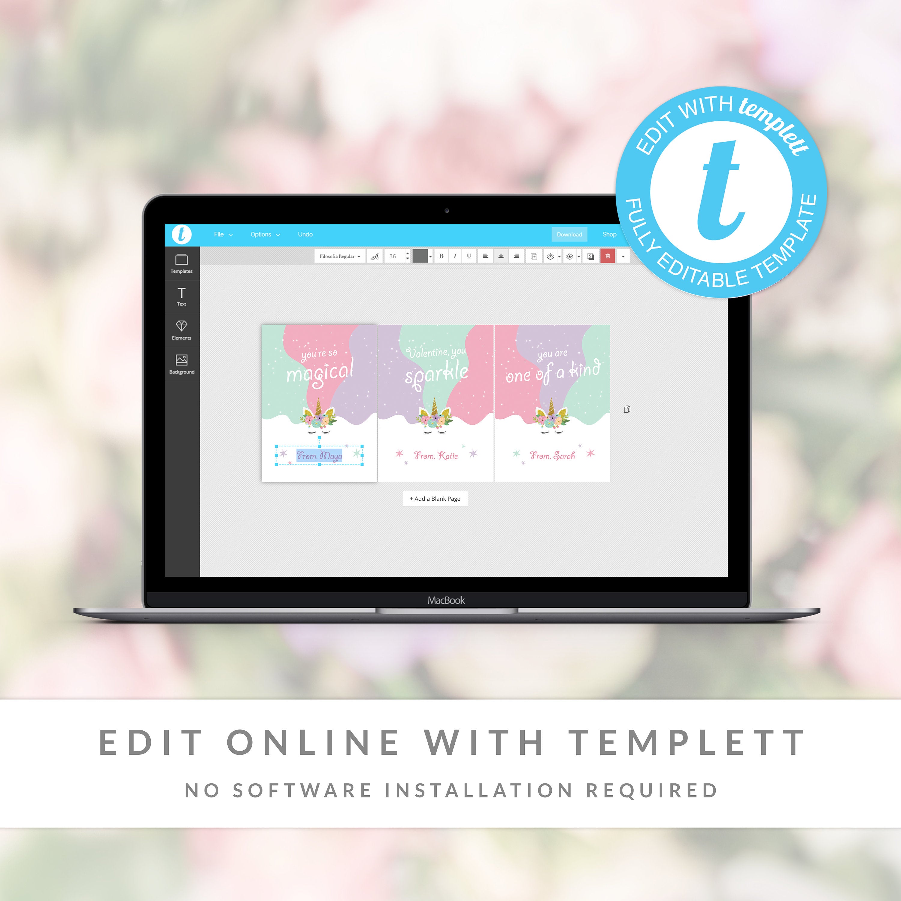 Unicon Printable Valentine Cards For Kids, Unicorn Valentine Day Card Printable Template, Unicorn Valentines, DIGITAL DOWNLOAD U100