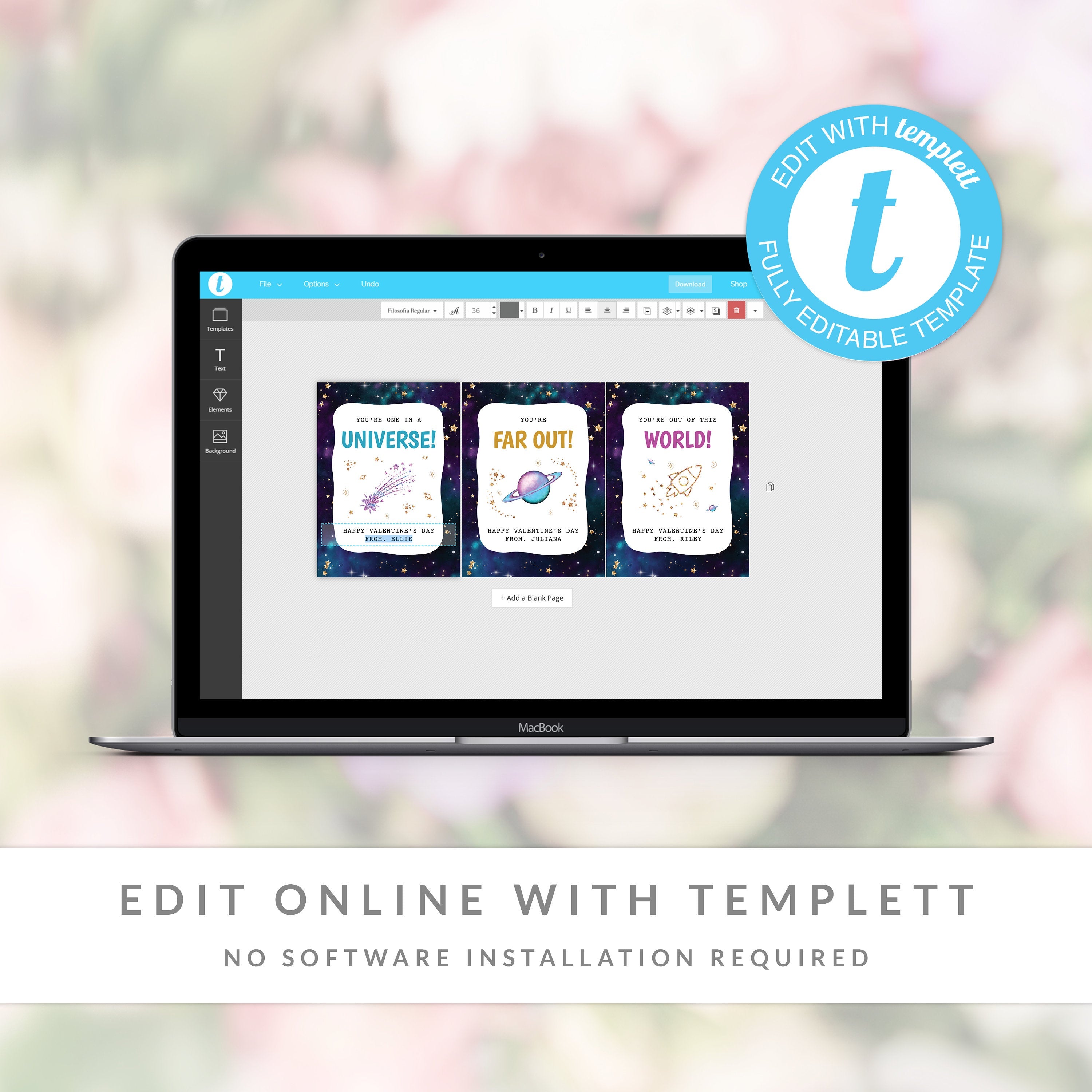 Outer Space Valentine Card Template, Printable Galaxy Valentine'sFor Kids, Editable INSTANT DOWNLOAD - SG100