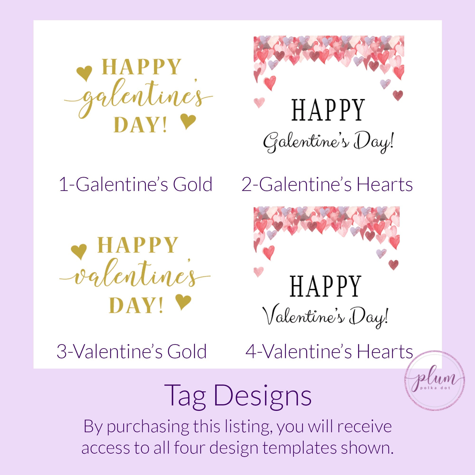 ~ Hair Scrunchie Tags - in the 4 designs shown (Valentine's Gold, Valentine's Hearts, Galentine's Gold, Galentine's Hearts