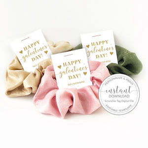 Galentine Card Template for Hair Scrunchies, Printable Galentine's Tag, Editable INSTANT DOWNLOAD - V100