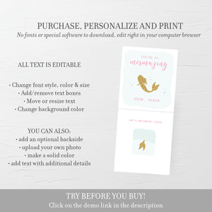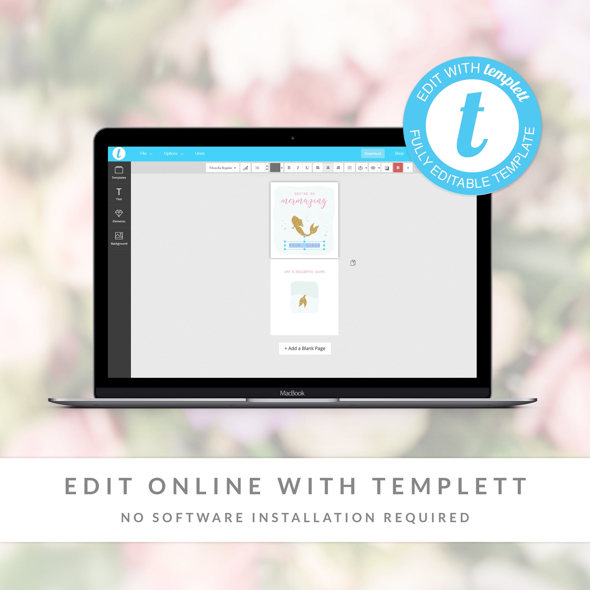 These Mermaid themed cards for hair scrunchies are available as an INSTANT DOWNLOAD editable template. Edit right in your browser using the online program, Templett. No software to download or fonts to install and you can even try it out before you buy!