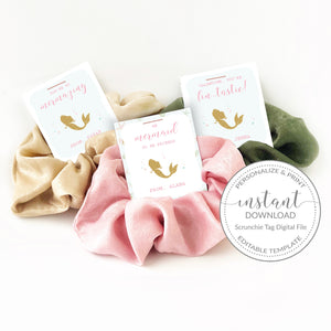 EDIT ONLINE, DOWNLOAD & PRINT TODAY - DIGITAL SCRUNCHIE TAG FILE ONLY (NO PHYSICAL ITEM WILL BE SHIPPED)