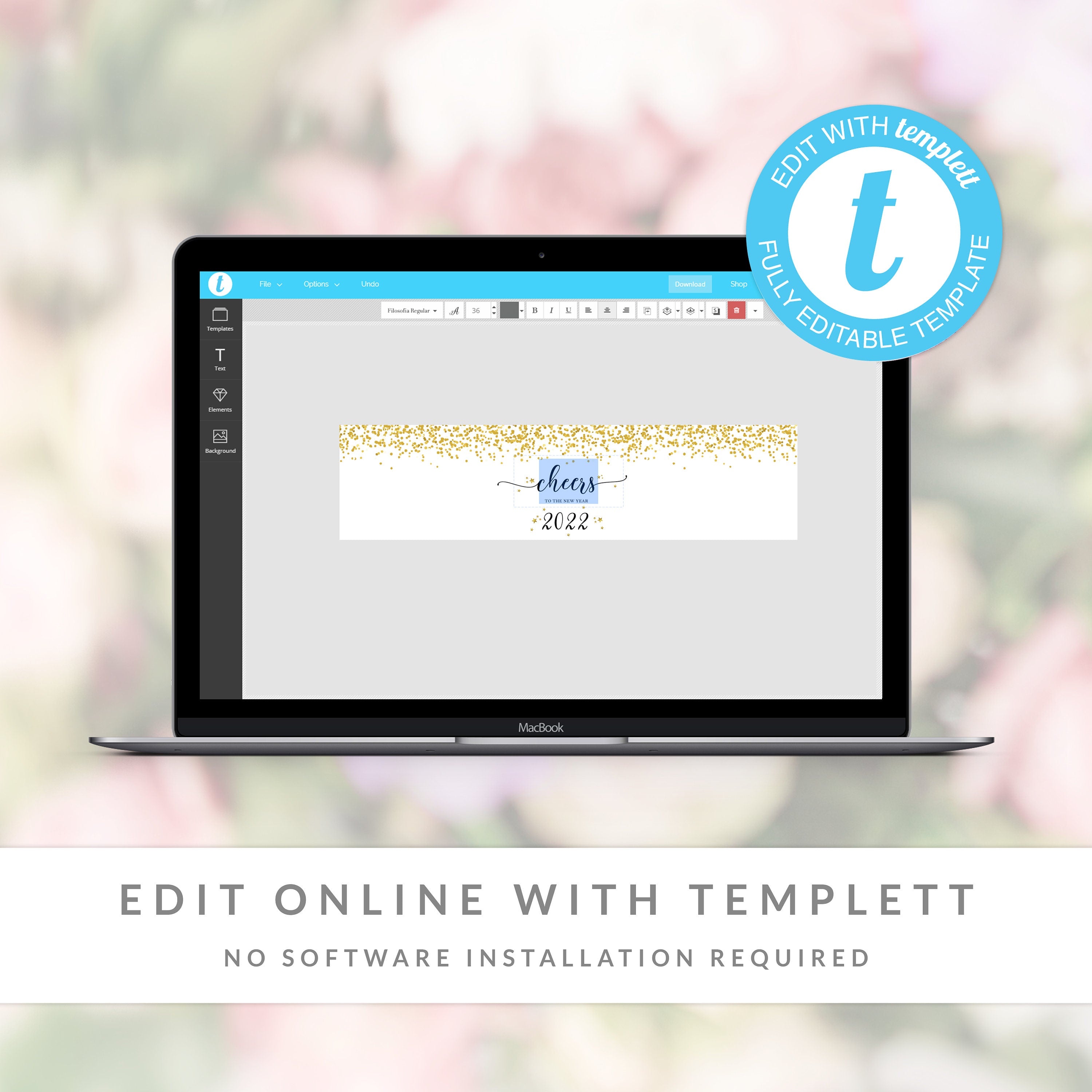 New Years Eve Water Bottle Labels Template, Printable New Years Party Drink Wrapper, Editable INSTANT DOWNLOAD - NY100