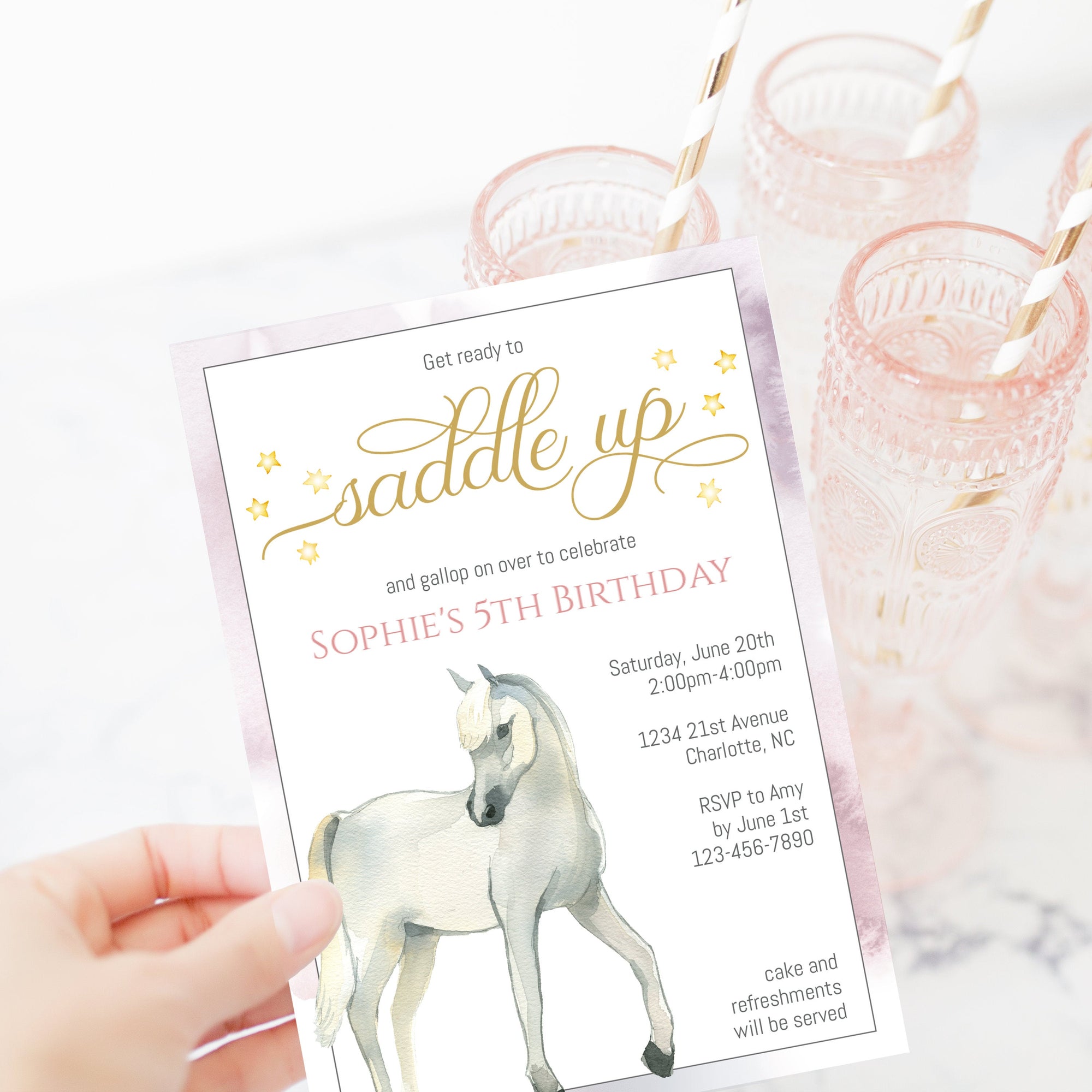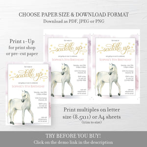 Horse Birthday Invitation Template, Printable Horse Party Invite, Editable INSTANT DOWNLOAD - D400