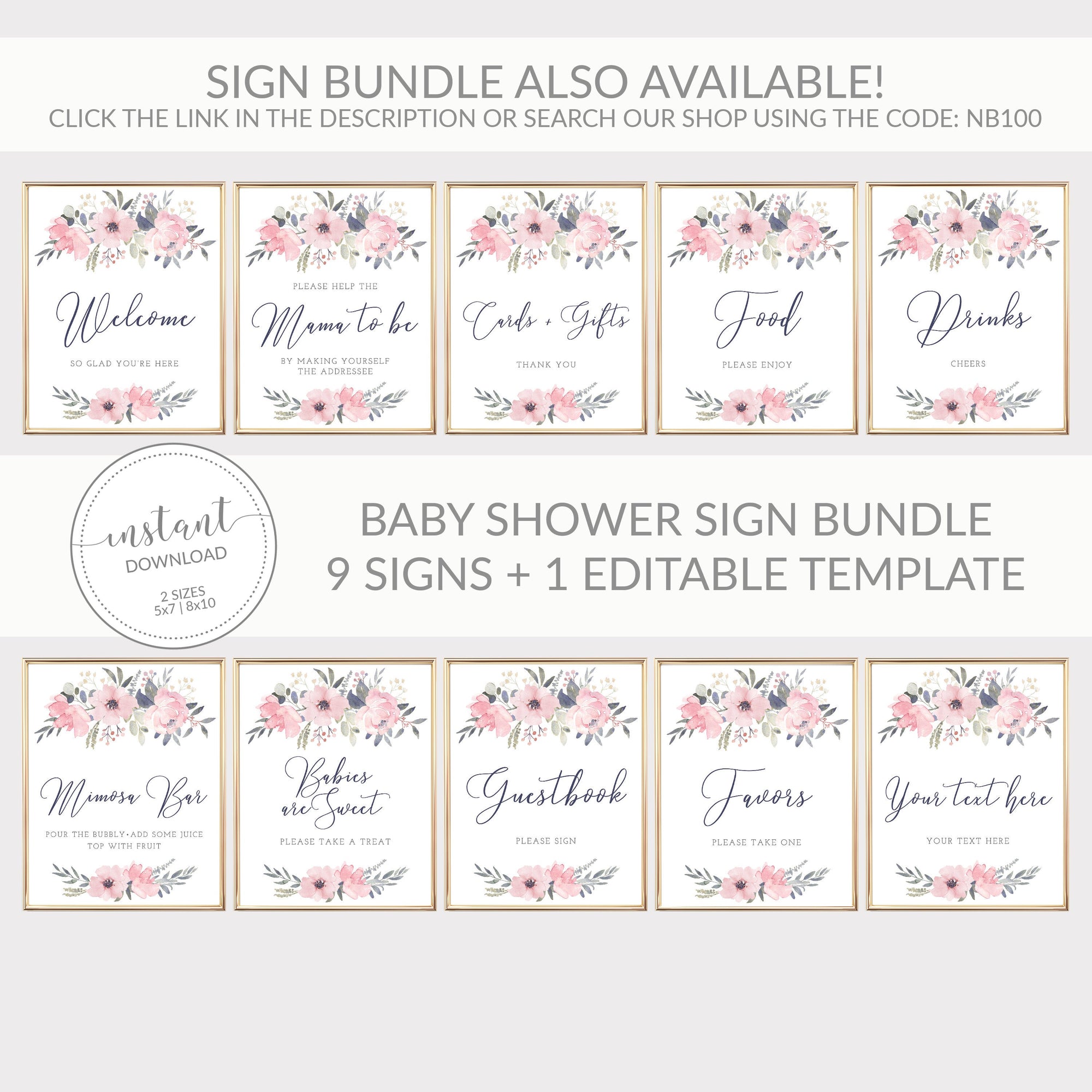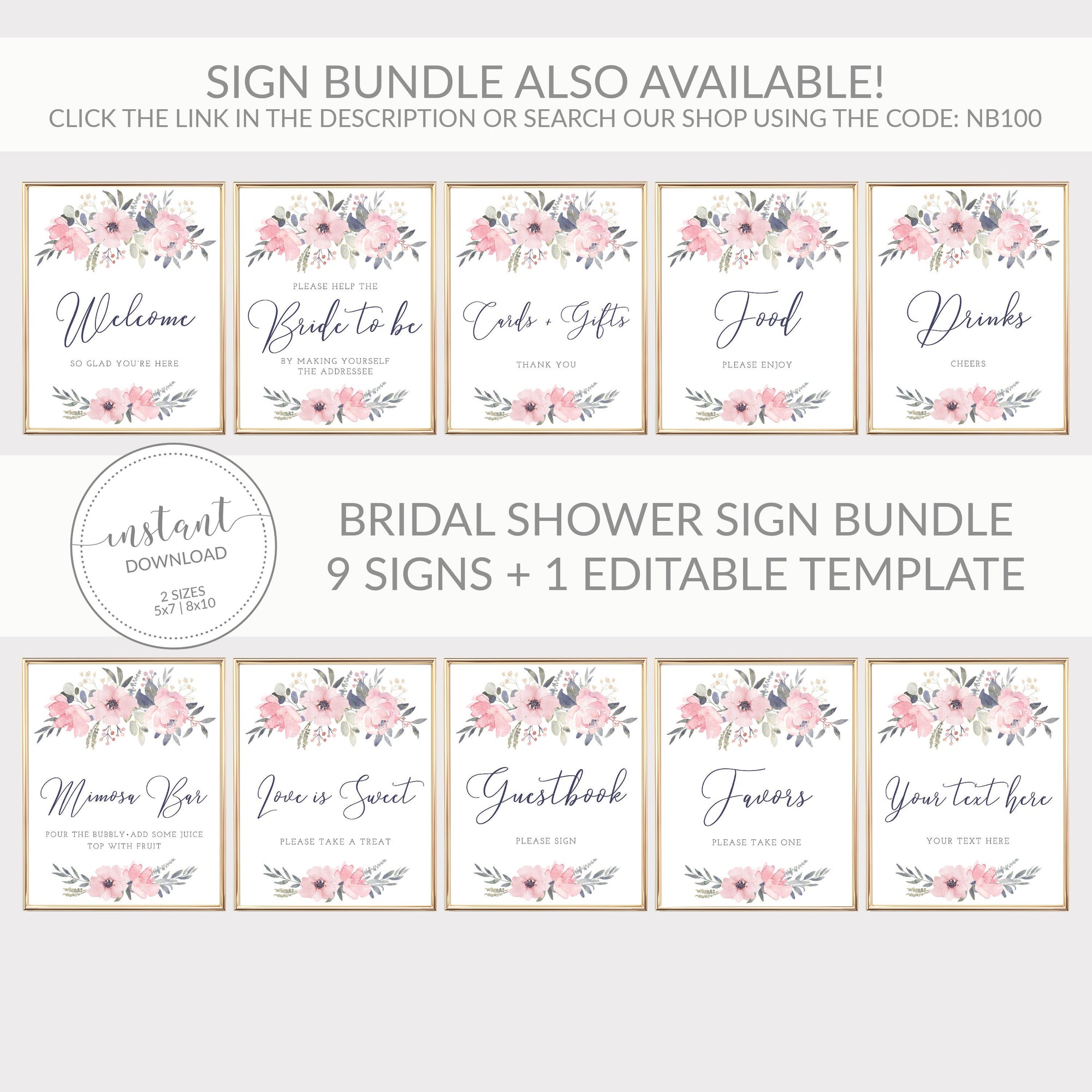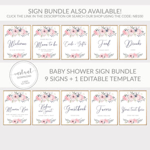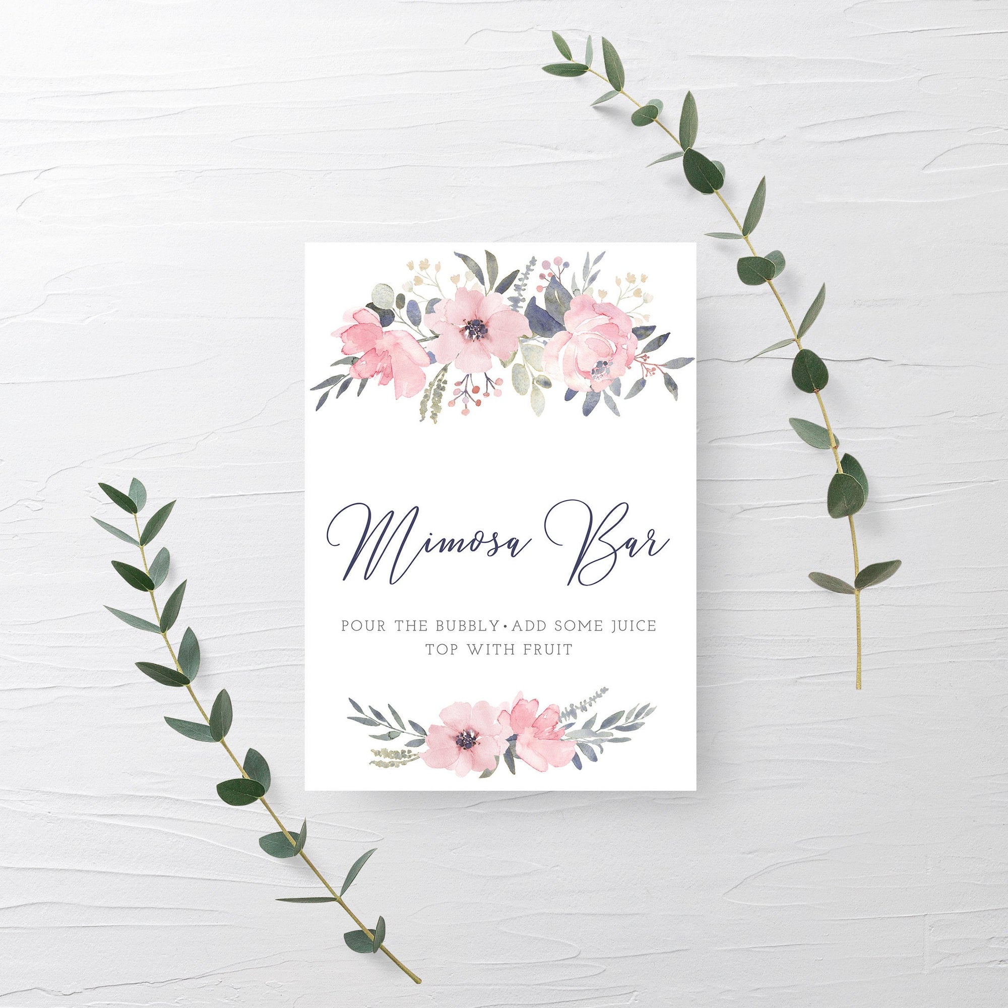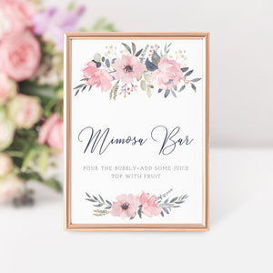 Navy and Blush Floral Mimosa Bar Sign Printable, INSTANT DOWNLOAD- NB100