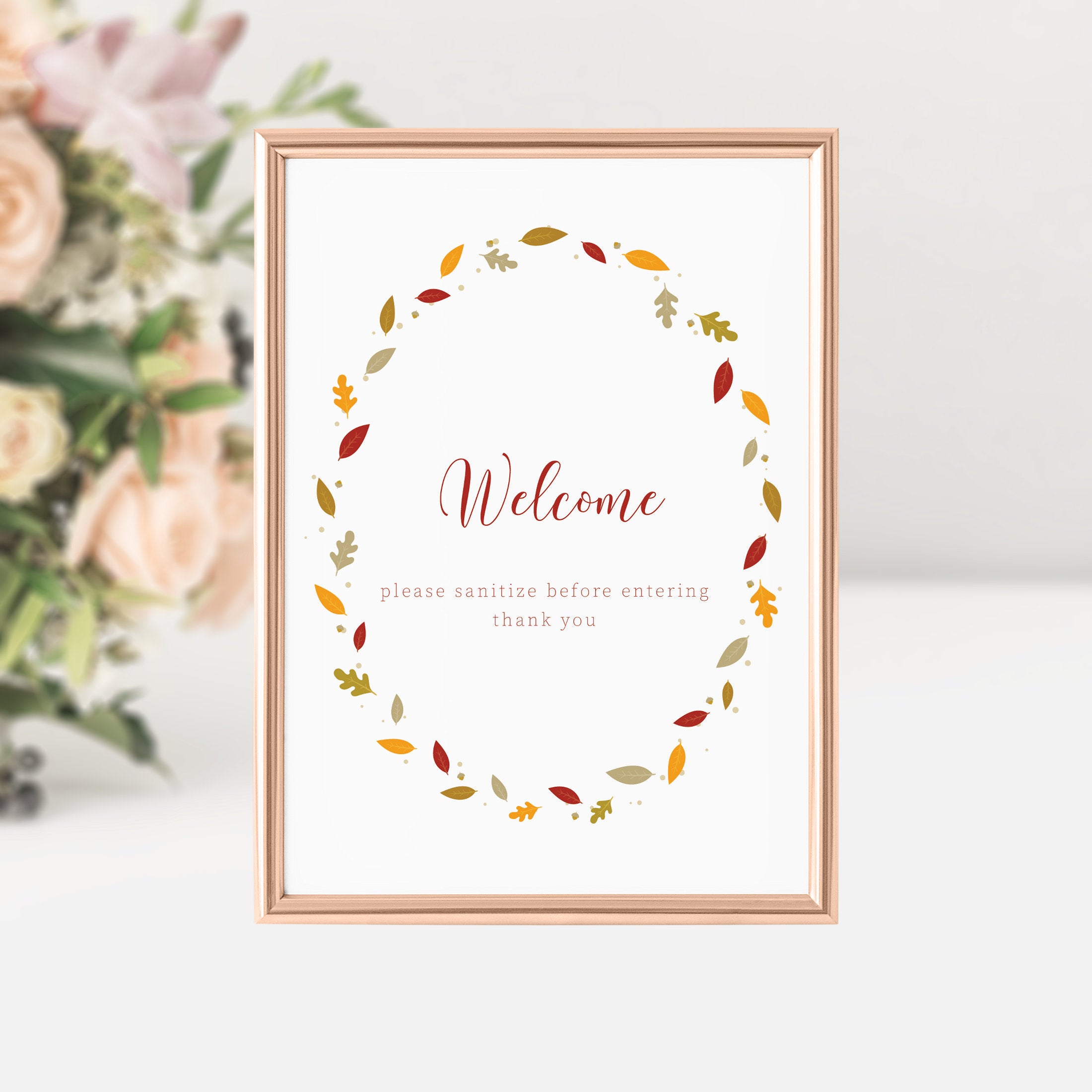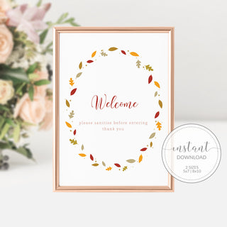 Fall Leaves Sanitize Before Entering Sign Printable, Thanksgiving Welcome Sign, Friendsgiving Welcome Sign, INSTANT DOWNLOAD - FL100